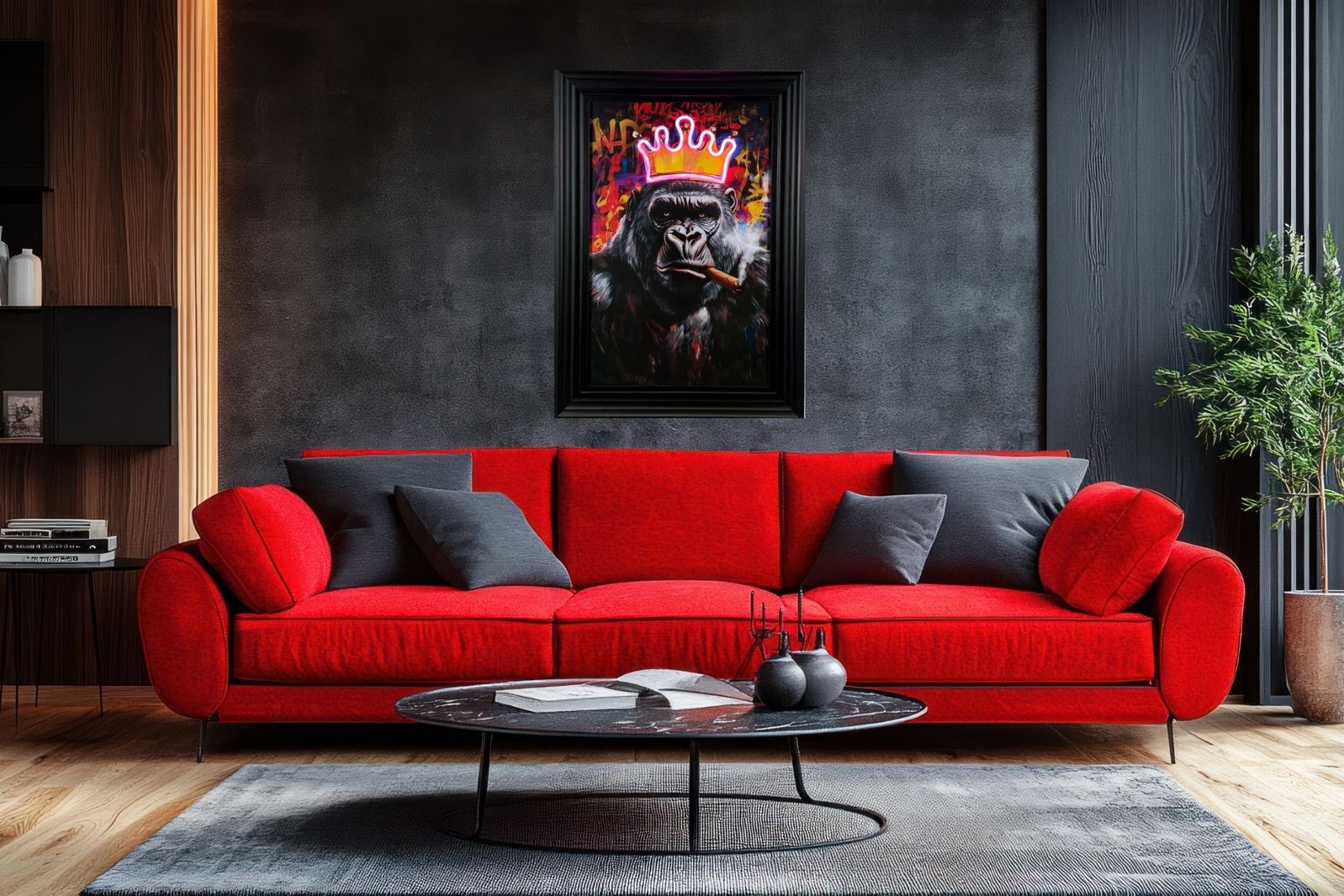 backdrop, gives the artwork an exciting edge, while the neon-style