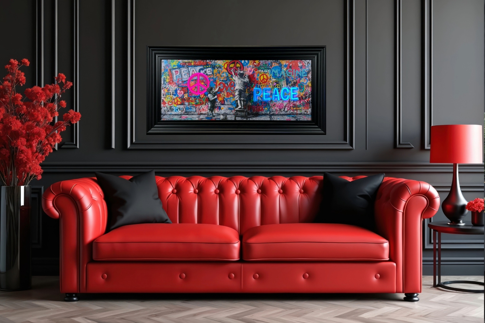 - > Framed LED Wall Art Picture of Graffiti Peace