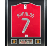 A framed display honouring Manchester City's legendary 2022/23 treble-winning season. This beautifully arranged tribute commemorates City’s historic sweep of the Premier League, FA Cup, and UEFA Champions League — a feat that cements their place among football’s greatest teams. Measuring approximately 40cm in height and 60cm in width, this vibrant display features dynamic photos of the squad lifting each trophy, jubilant team celebrations, and standout season stats.