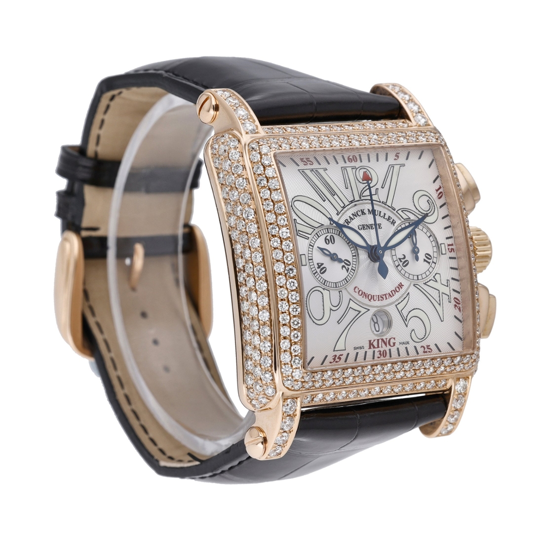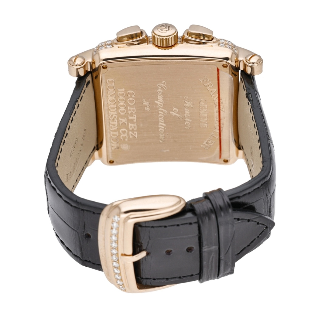 A Franck Muller Conquistador Cortez Watch, Black Leather Strap with an 18ct Rose Gold & Diamond Case & Clasp on a Silver Dial