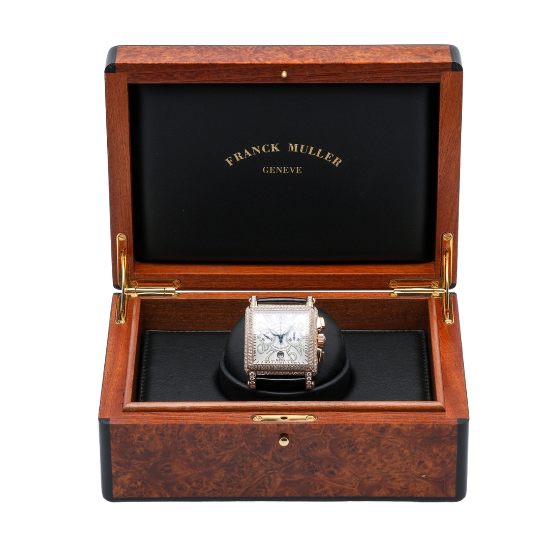 Dated 2023, this timepiece is offered in good condition and comes with its original Franck Muller paperwork, presentation box, and a 12-month warranty from WLC. Boxed & Certified, this Conquistador Cortez is not just a watch but a jewel — a rare opportunity to own a striking masterpiece where precious metal meets diamond brilliance in perfect harmony.