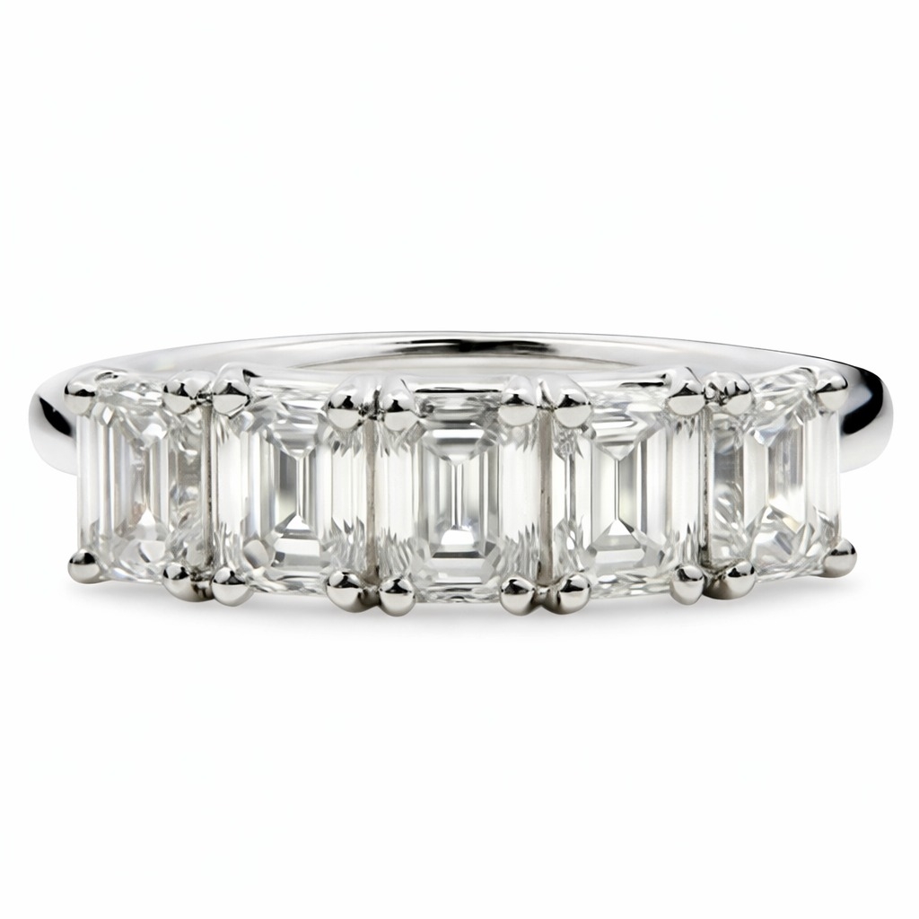 A brand-new, unused GIA-certified natural diamond five-stone cluster ring that celebrates the timeless allure, rarity and lasting value of genuine diamonds, crafted with precision in a sleek platinum setting. This refined piece showcases five beautifully matched emerald-cut natural diamonds with a combined weight of 1.50ct, each graded VS2 for clarity and F–G in colour, offering an appealing balance of brightness and crisp transparency that suits the geometric elegance of the emerald cut.