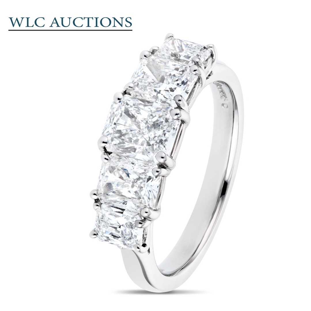 A brand-new, unused GIA-certified natural diamond five-stone cluster ring that showcases refined brilliance, exceptional clarity and a timeless sense of luxury. Set with five radiant-cut natural diamonds totalling 2.83ct in outstanding E–F colour and VVS–SI clarity, the ring delivers an impressive play of light as each stone reflects crisp flashes of fire from its precisely faceted shape. The radiant cut offers a striking combination of sparkle and structure, giving the design a modern yet enduring elegance that stands out beautifully on the hand. These natural diamonds carry strong appeal for collectors, as earth-formed stones continue to be admired for their rarity, authenticity and long-standing desirability in fine jewellery. With natural diamond supply becoming increasingly limited worldwide and high-quality stones remaining in strong demand, pieces set with certified natural diamonds offer meaningful long-term investment potential alongside their immediate aesthetic impact.