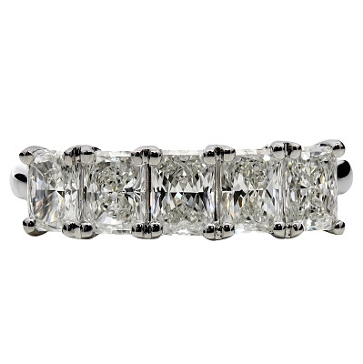 A brand-new, unused, GIA-certified natural diamond five-stone eternity ring, with five radiant-cut diamonds, set in platinum.