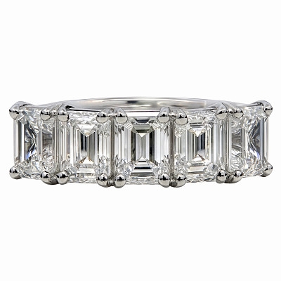 A brand-new, unused, GIA-certified natural diamond five-stone eternity ring, set with five emerald-cut diamonds, set in platinum.