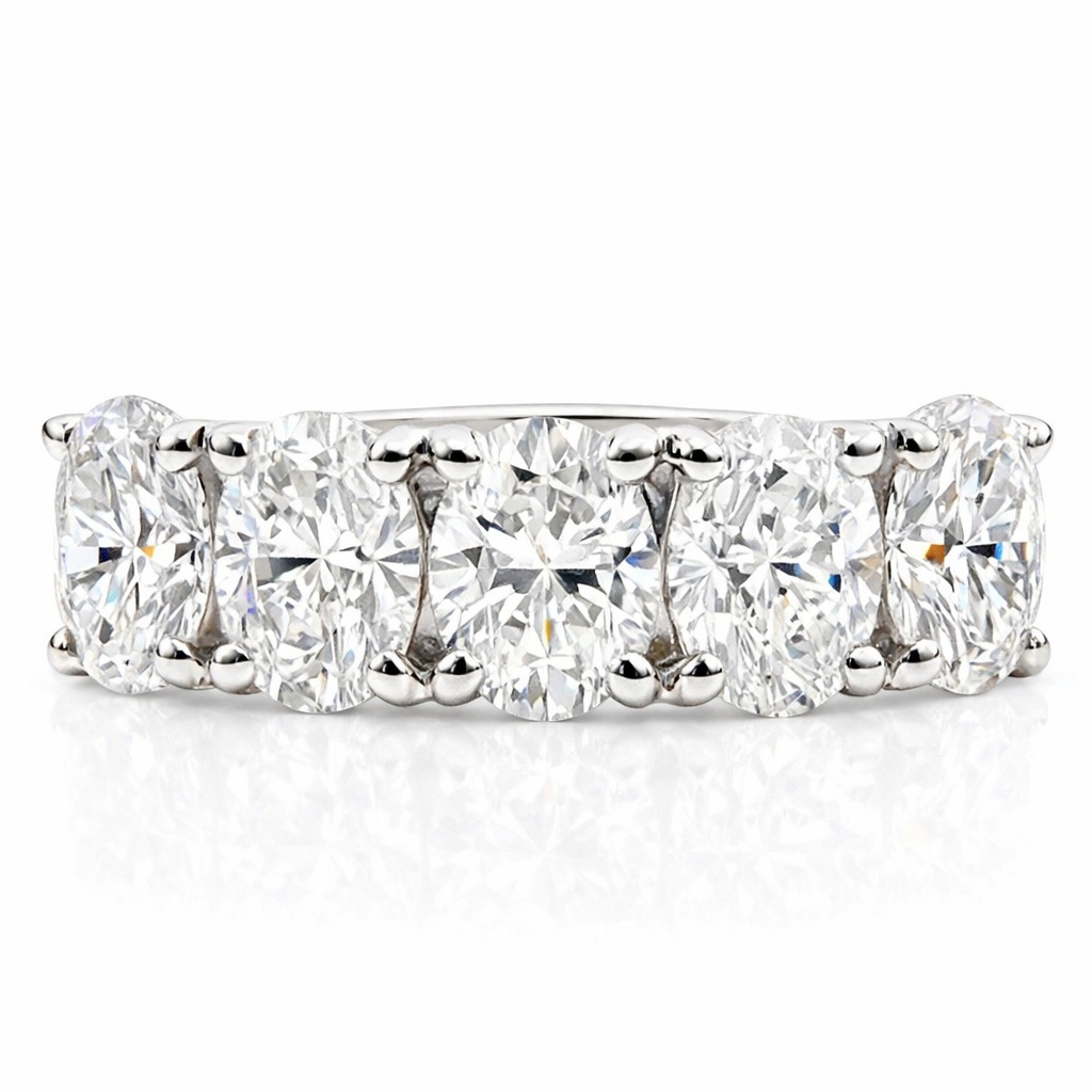 A brand-new, unused, GIA-certified natural diamond five-stone eternity ring, set with five oval-cut diamonds, set in platinum.