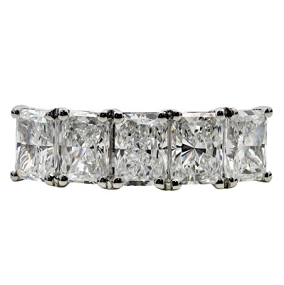 A brand-new, unused GIA-certified natural diamond five-stone eternity ring, with five radiant-cut diamonds, set in platinum.