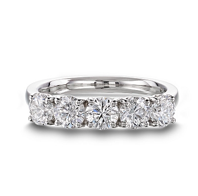A brand-new, unused GIA-certified natural diamond five-stone eternity ring, with five brilliant-cut diamonds, set in platinum.