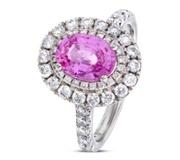 Encircling the centre stone is a delicate halo of brilliant-cut diamonds, adding extra sparkle and dimension. The shoulders are equally adorned, creating a seamless flow of light that draws the eye from every angle. These additional diamonds total 0.31ct, enhancing the ring’s luminosity without overshadowing the centrepiece.