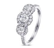 A brand-new, unused, GIA-certified natural diamond solitaire engagement ring set with one brilliant-cut diamond at the centre & a cluster of brilliant-cut diamonds to the shoulders, set in 18ct yellow & white gold.