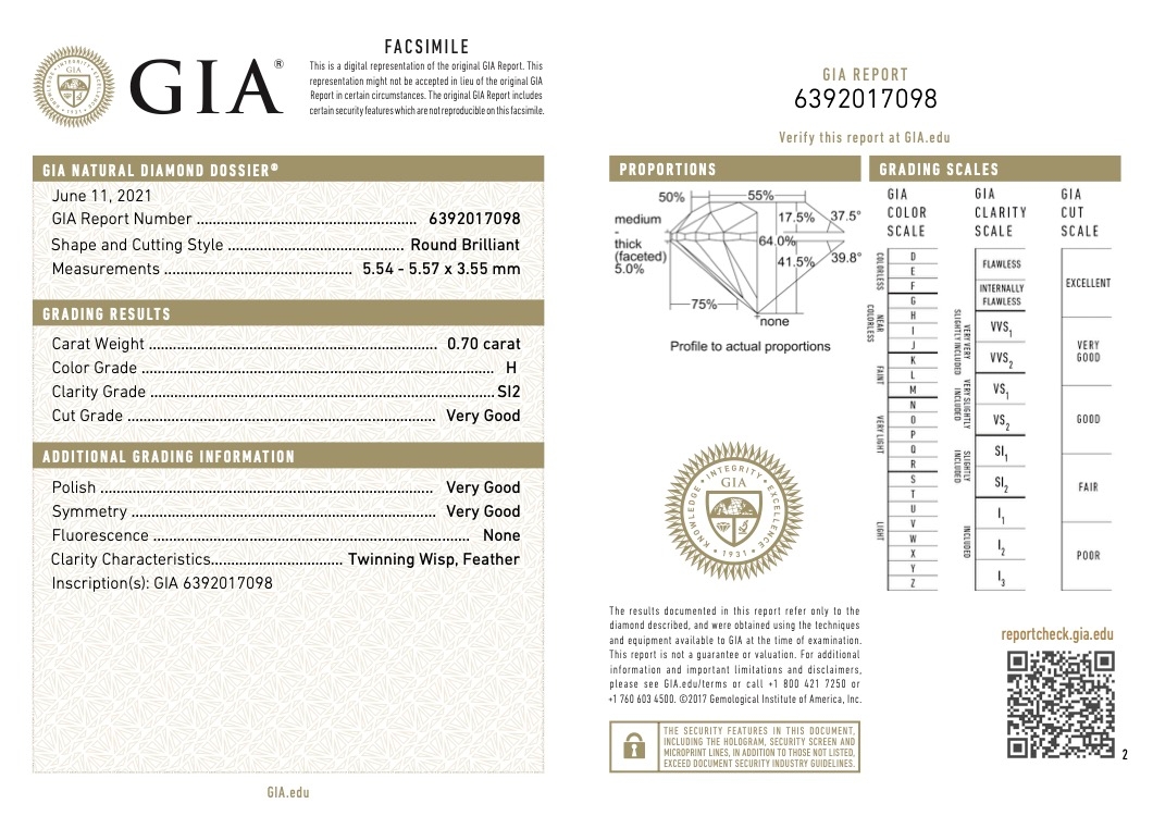 This ring has a unique GIA serial number laser-engraved on the diamond.