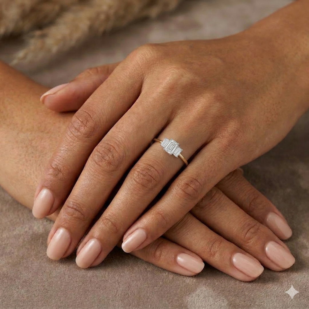A brand-new, unused GIA-certified natural diamond three-stone cluster ring, set in platinum and 18ct yellow gold, presenting a composed and elegant design defined by proportion, clarity and lasting value. The ring features three emerald-cut natural diamonds with a combined weight of 1.31 carats, carefully selected for their clean step-cut geometry, balanced symmetry and understated brilliance. Graded G colour with VS1–VS2 clarity, the diamonds display excellent transparency, crisp definition and a timeless visual appeal that translates effortlessly across changing tastes.