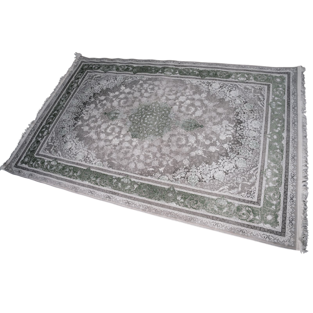 A green finely woven, soft touch persian style carpet. Approx 150cm x 230cm