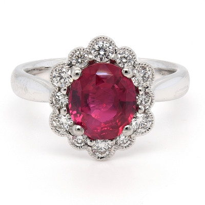 - > Gubelin Natural Ruby 2.04ct & Diamond 0.40ct Flower Shaped Cluster Ring