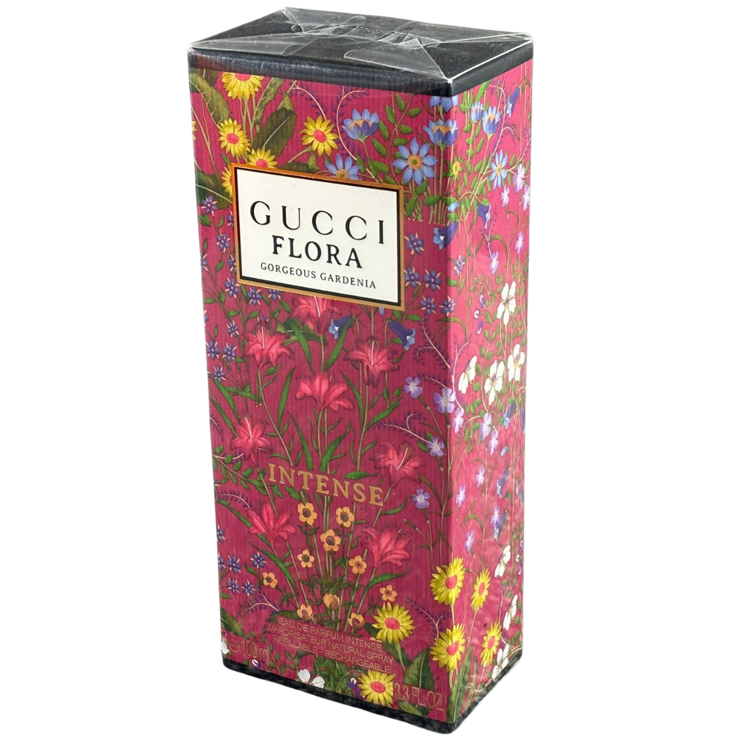 A 100ml bottle of Gucci Flora Gorgeous Gardenia Intense Eau de Parfum, presented in its original Gucci presentation box, offering a luxurious and expressive fragrance from one of the world’s most iconic fashion houses. The beautifully designed bottle, adorned with the signature Flora pattern, makes this piece instantly eye-catching and ideal for gifting or enhancing any personal perfume collection.