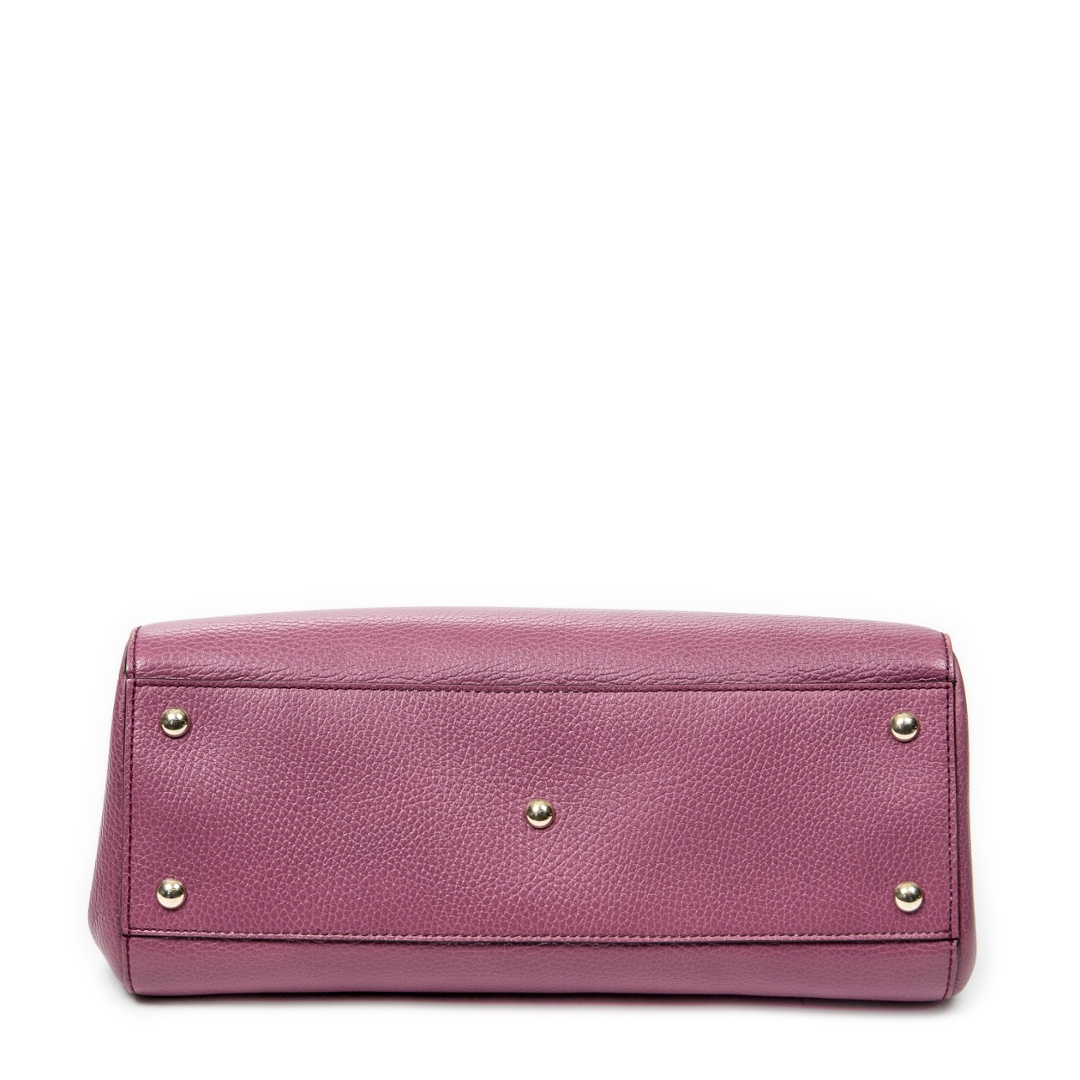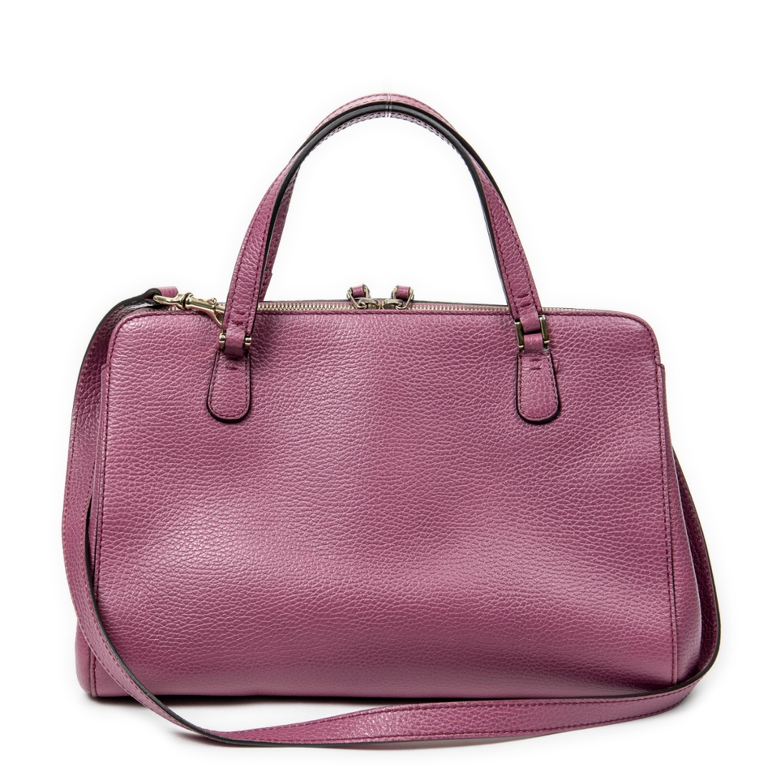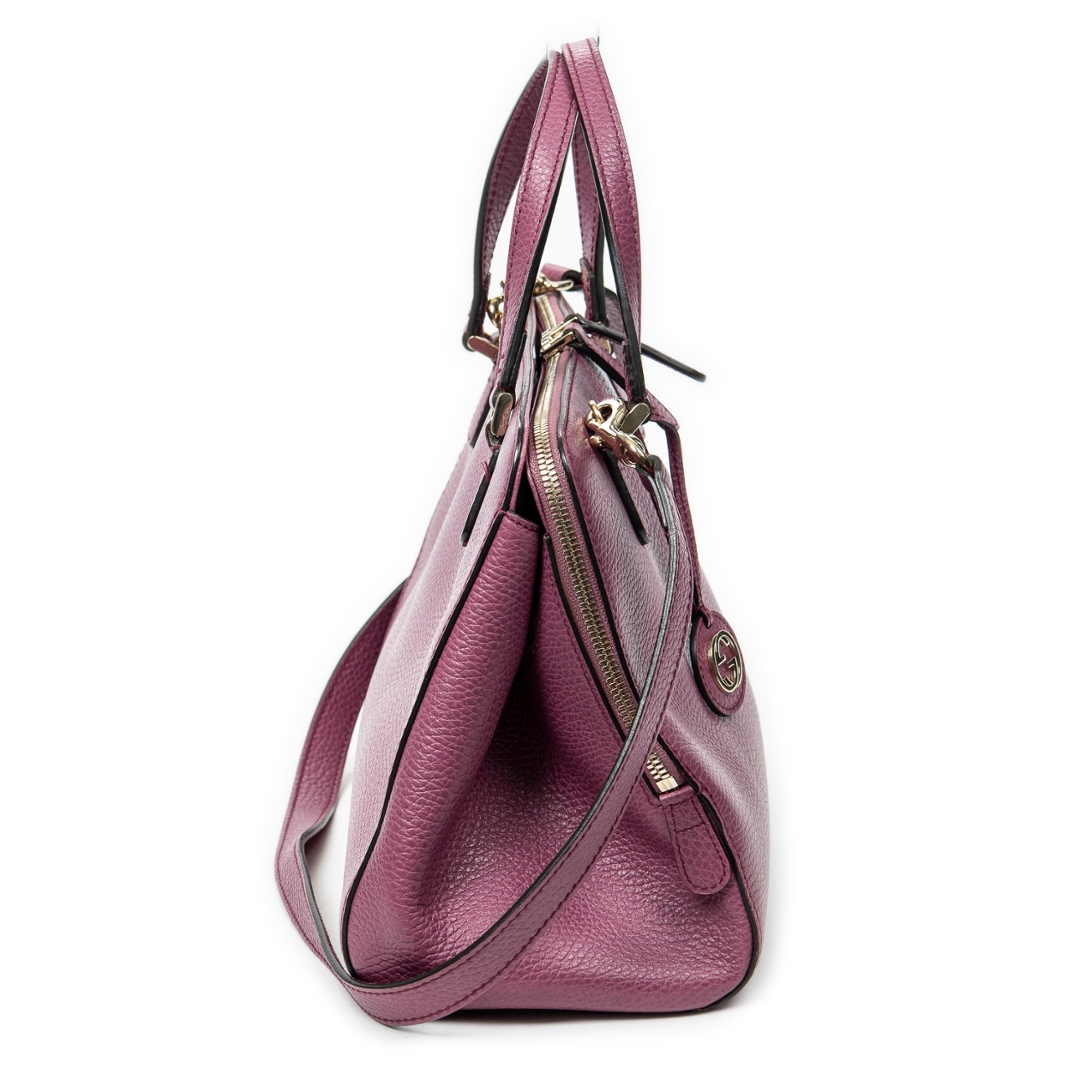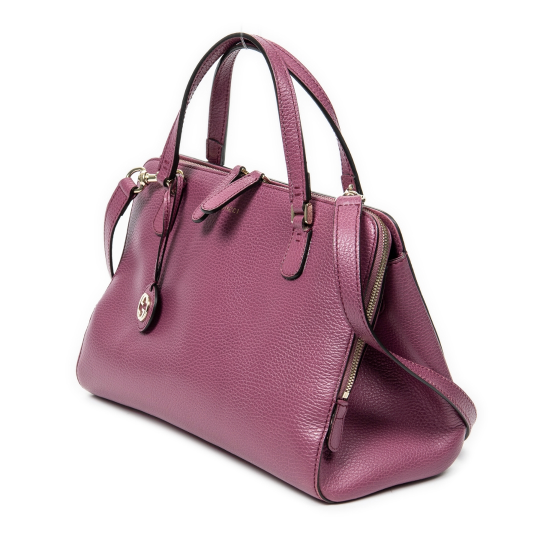 A vintage Gucci purple calf leather 2-Way Top Handle bag with a certificate of authenticity. Approximately 21cm height, 31cm width.