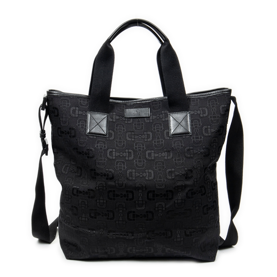 A vintage Gucci black canvas 2-Way Tote bag with a certificate of authenticity, Approximately 37cm height, 40cm width.