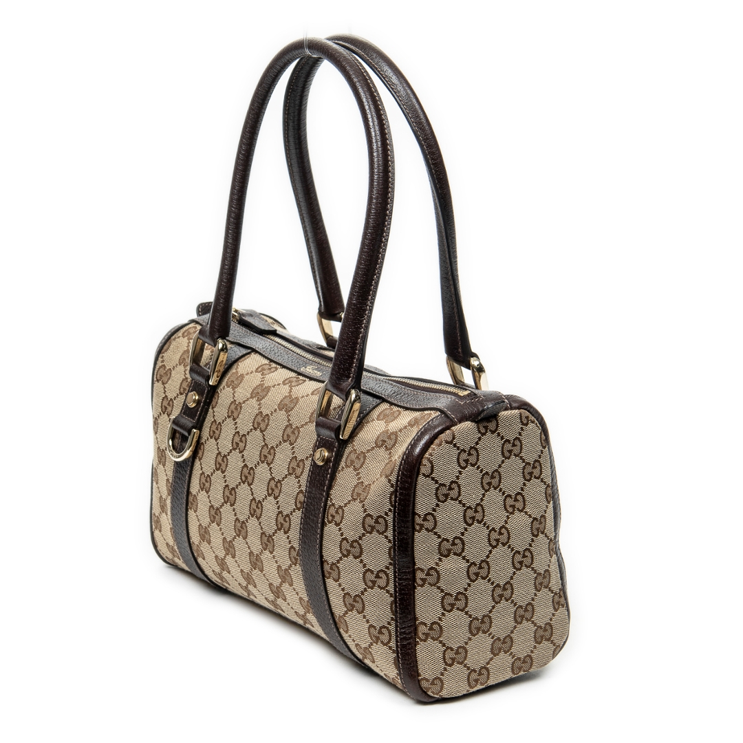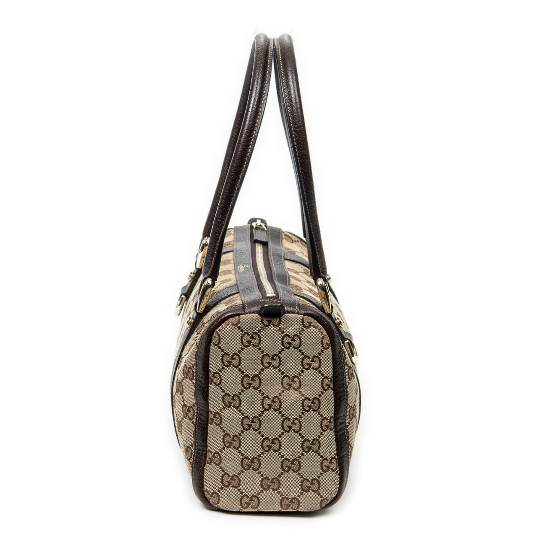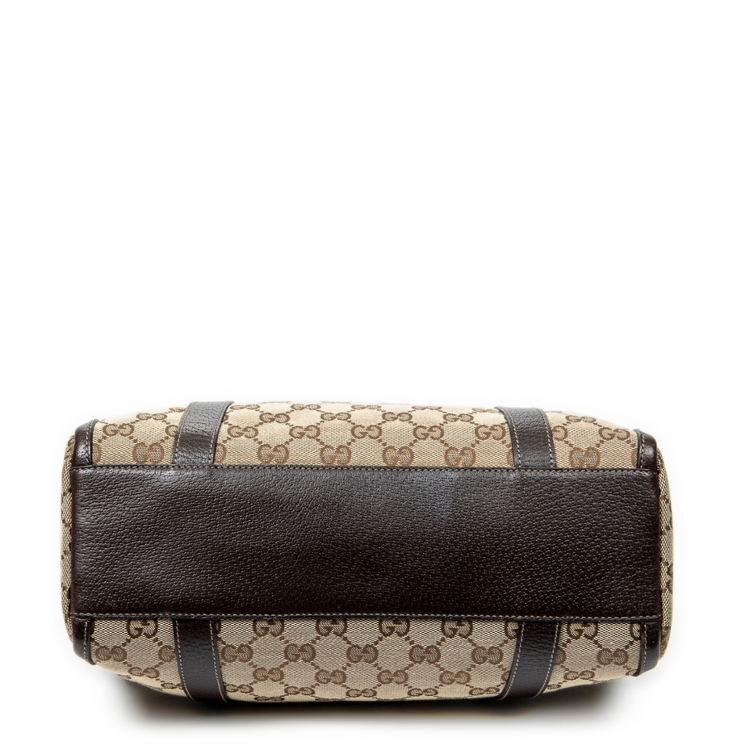 A vintage Gucci beige/brown canvas Abbey Boston bag with a certificate of authenticity. Approximately 17cm height, 28cm width.