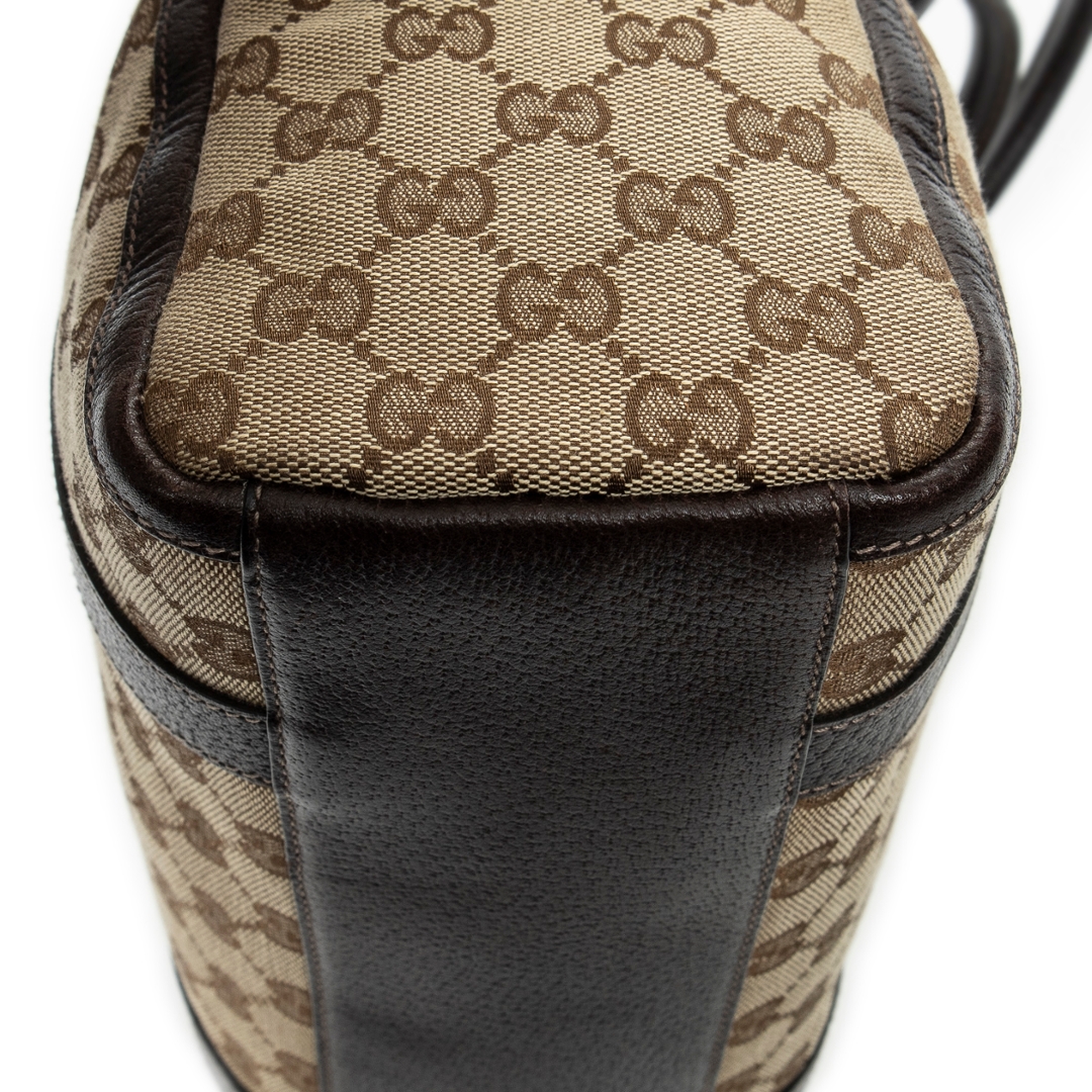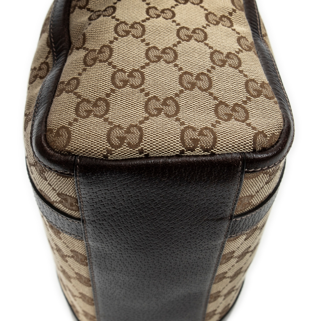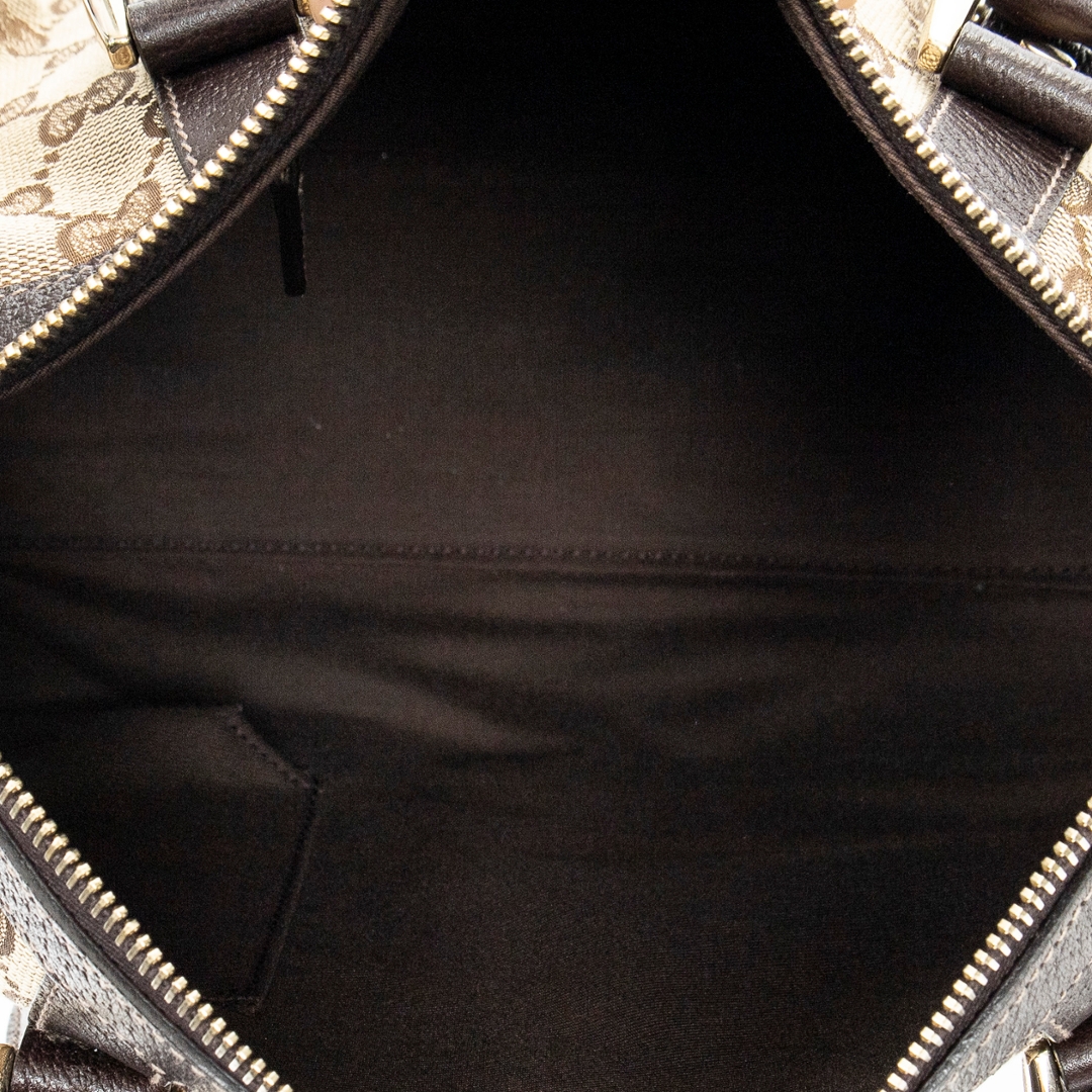 A vintage Gucci beige/brown canvas Abbey Boston bag with a certificate of authenticity. Approximately 17cm height, 28cm width.