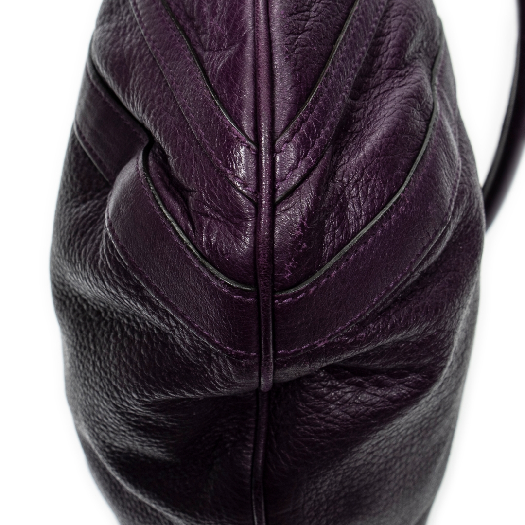 A vintage Gucci purple calf leather Abbey Convertible Tote bag with a certificate of authenticity. Approximately 35cm height,43 cm width.