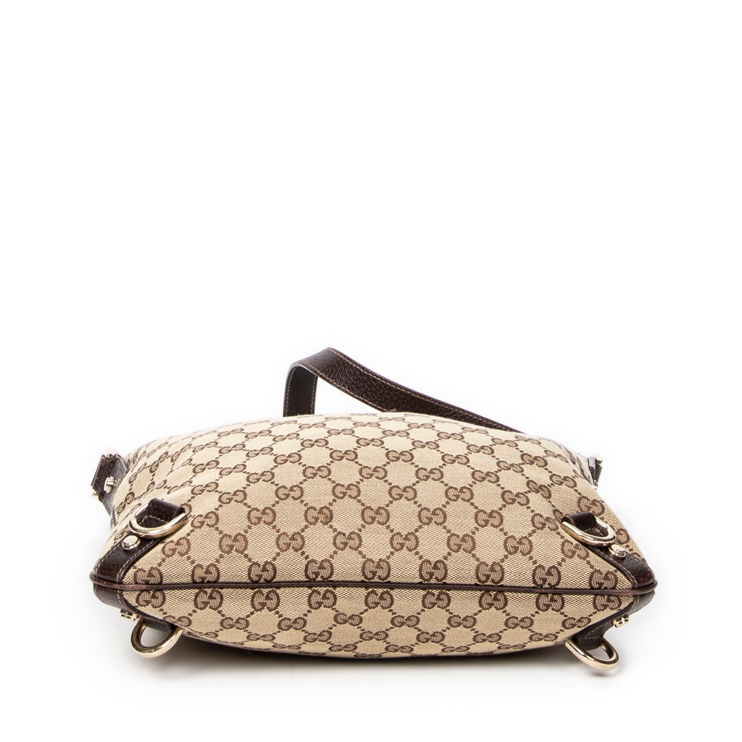 A vintage Gucci beige/brown canvas Abbey Crossbody bag with a certificate of authenticity, Approximately 30cm height, 30cm width.