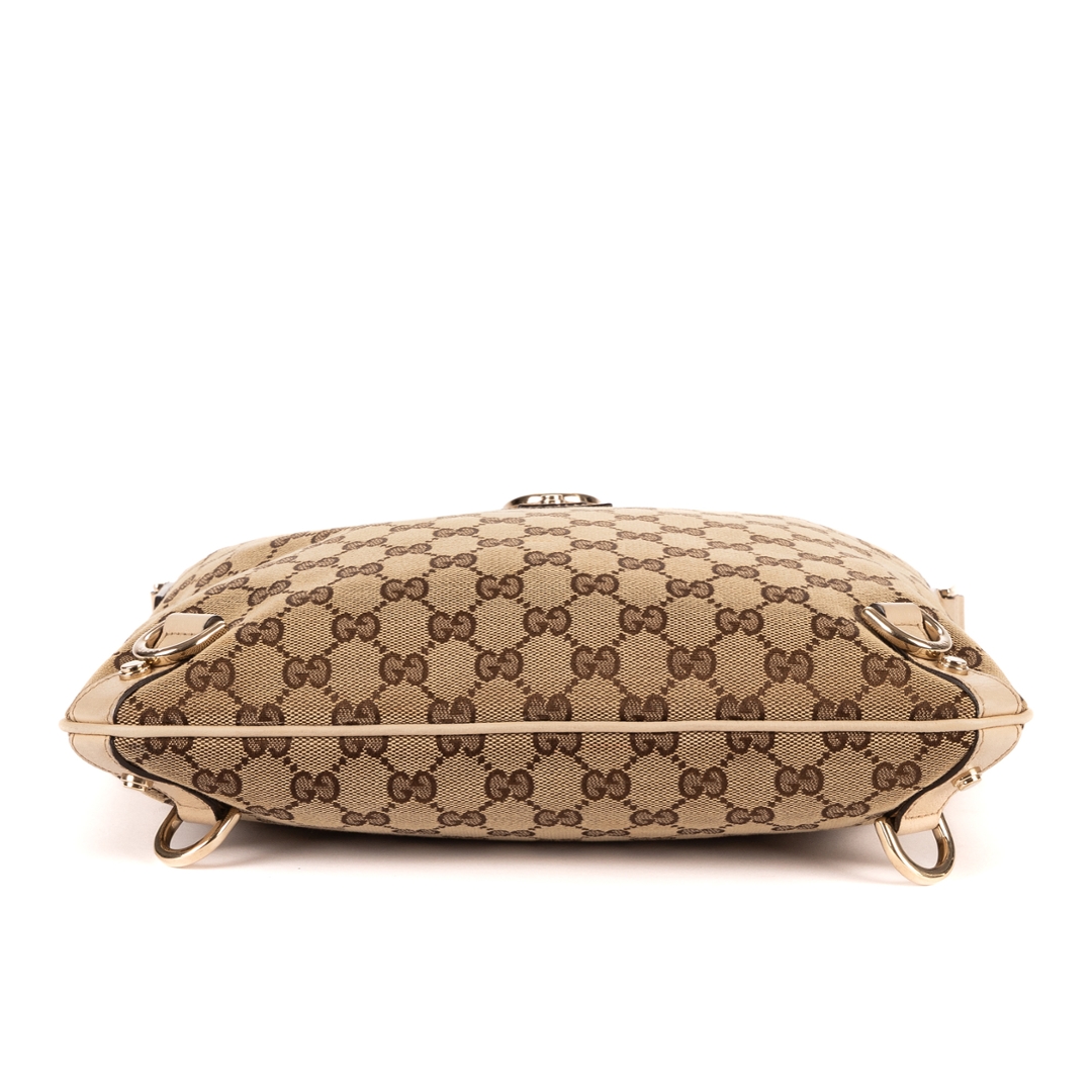A vintage Gucci ivory/beige calf leather Abbey D-Ring Messenger bag with a certificate of authenticity, Approximately 30cm height, 30cm width.