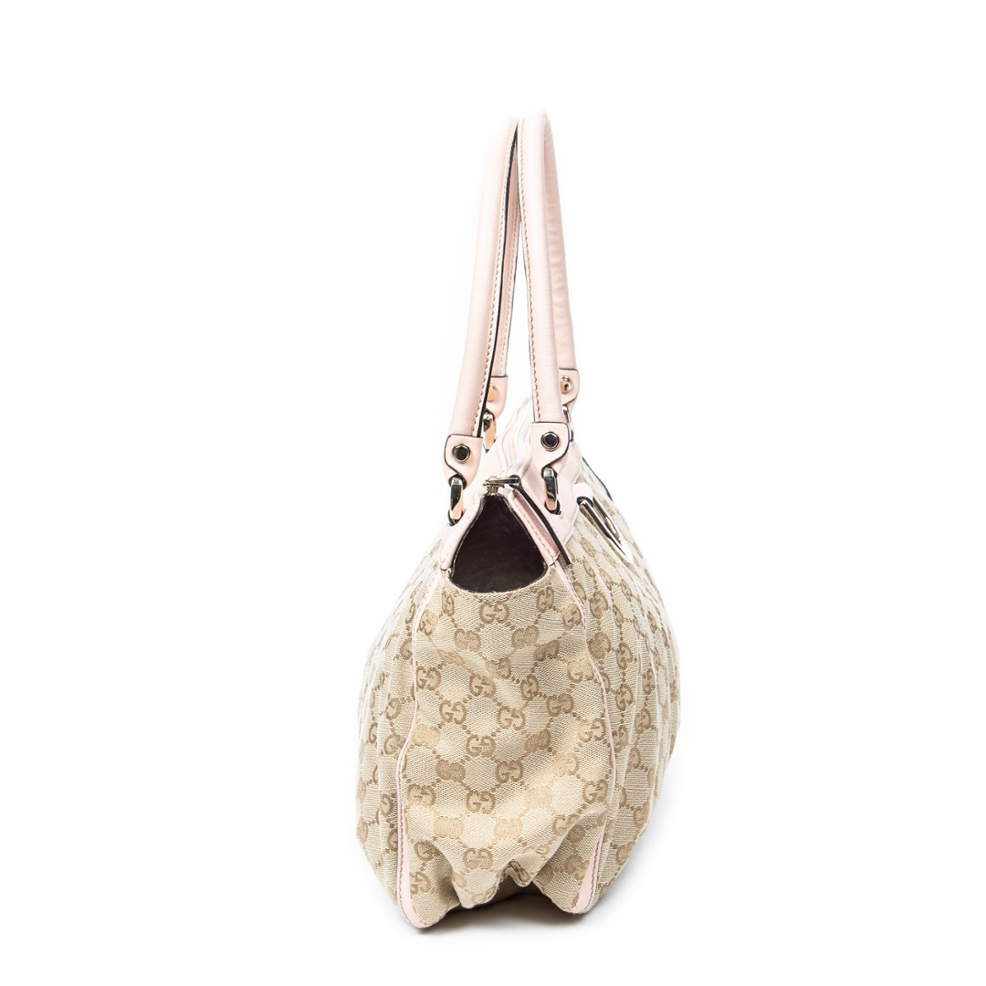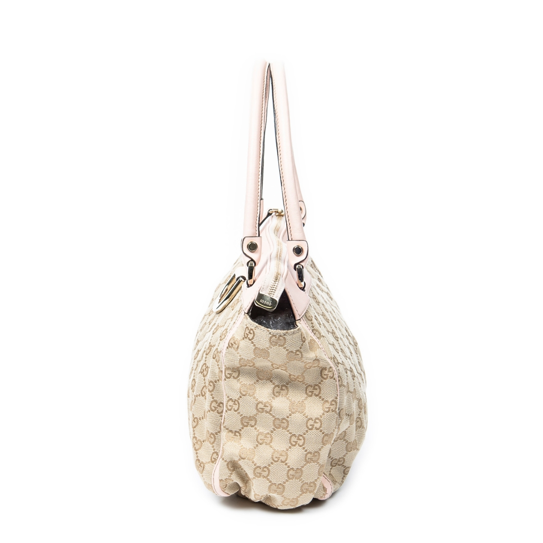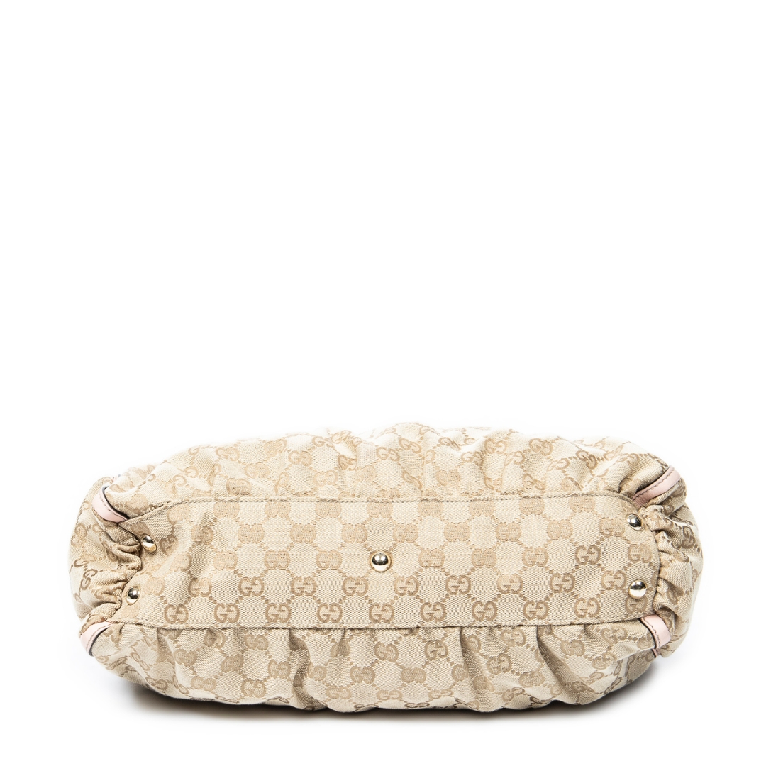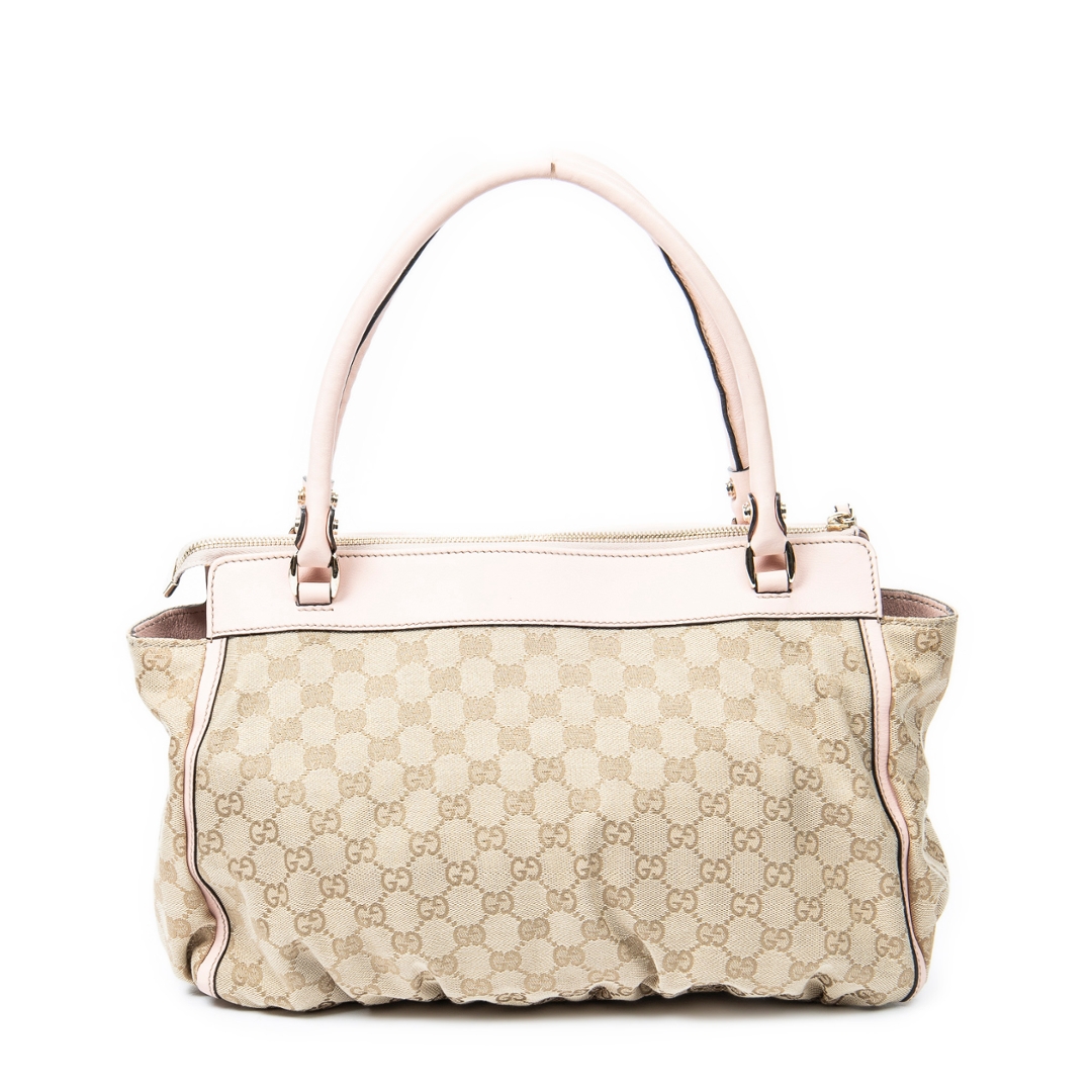 A vintage Gucci ponk/beige canvas Abbey D-Ring Zip Tote bag with a certificate of authenticity. Approximately 25cm height, 33cm width.