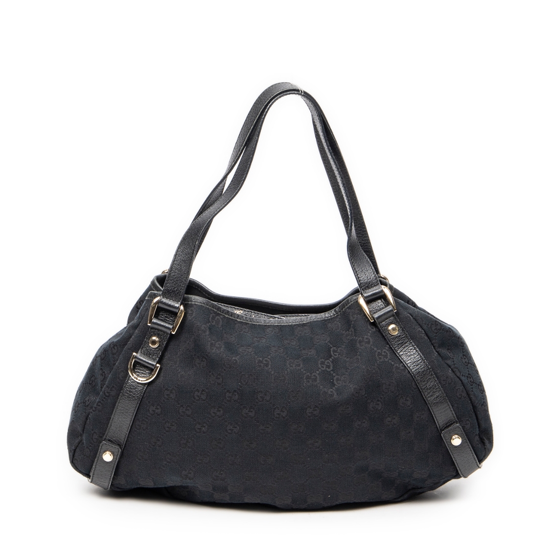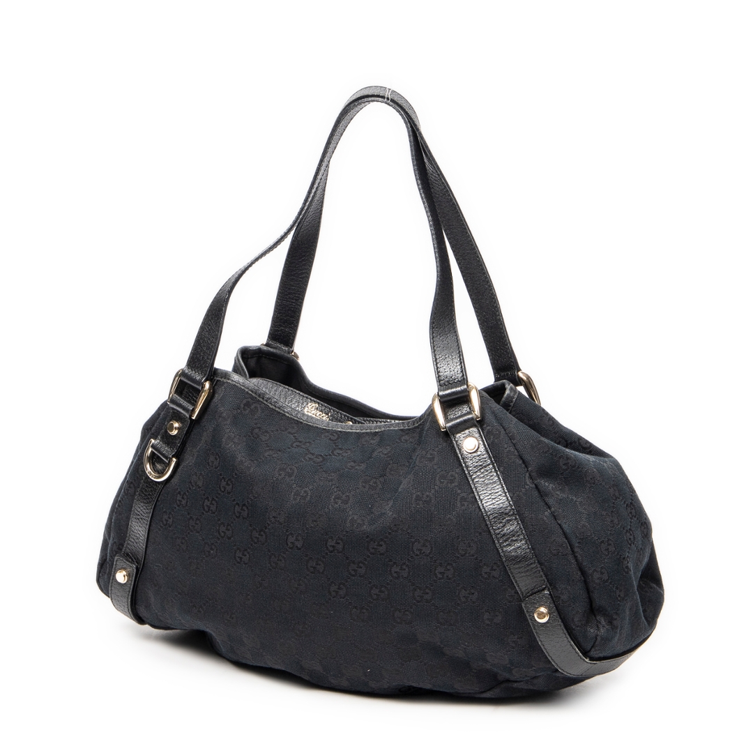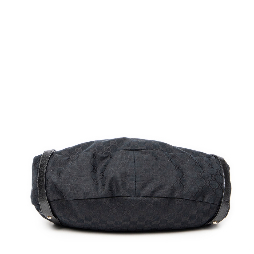 A vintage Gucci black canvas Abbey Hobo Diagonal bag with a certificate of authenticity, Approximately 24cm height, 41cm width.