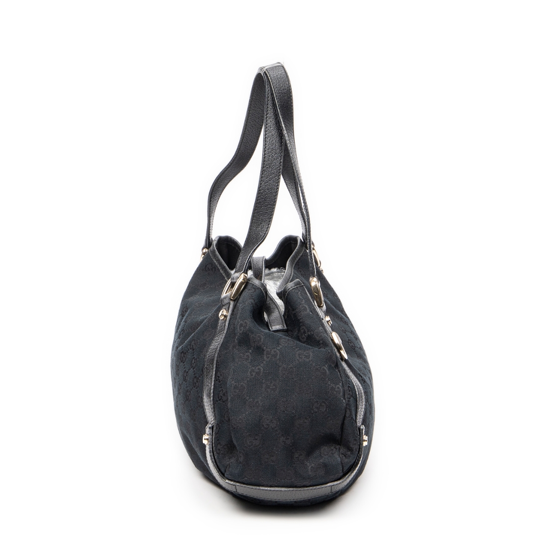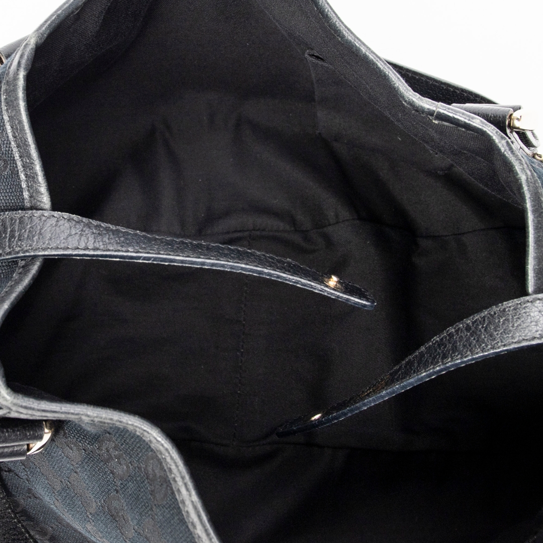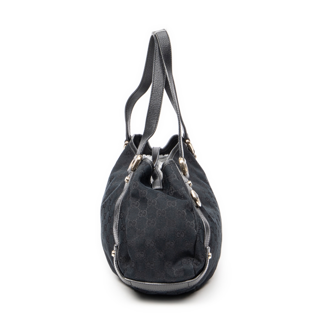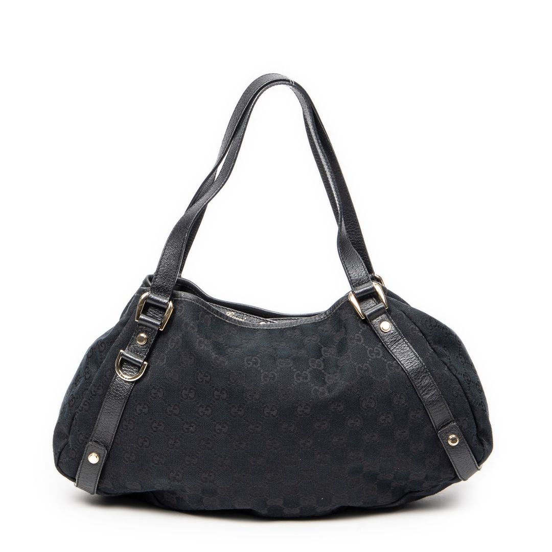 A vintage Gucci black canvas Abbey Hobo Diagonal bag with a certificate of authenticity, Approximately 24cm height, 41cm width.