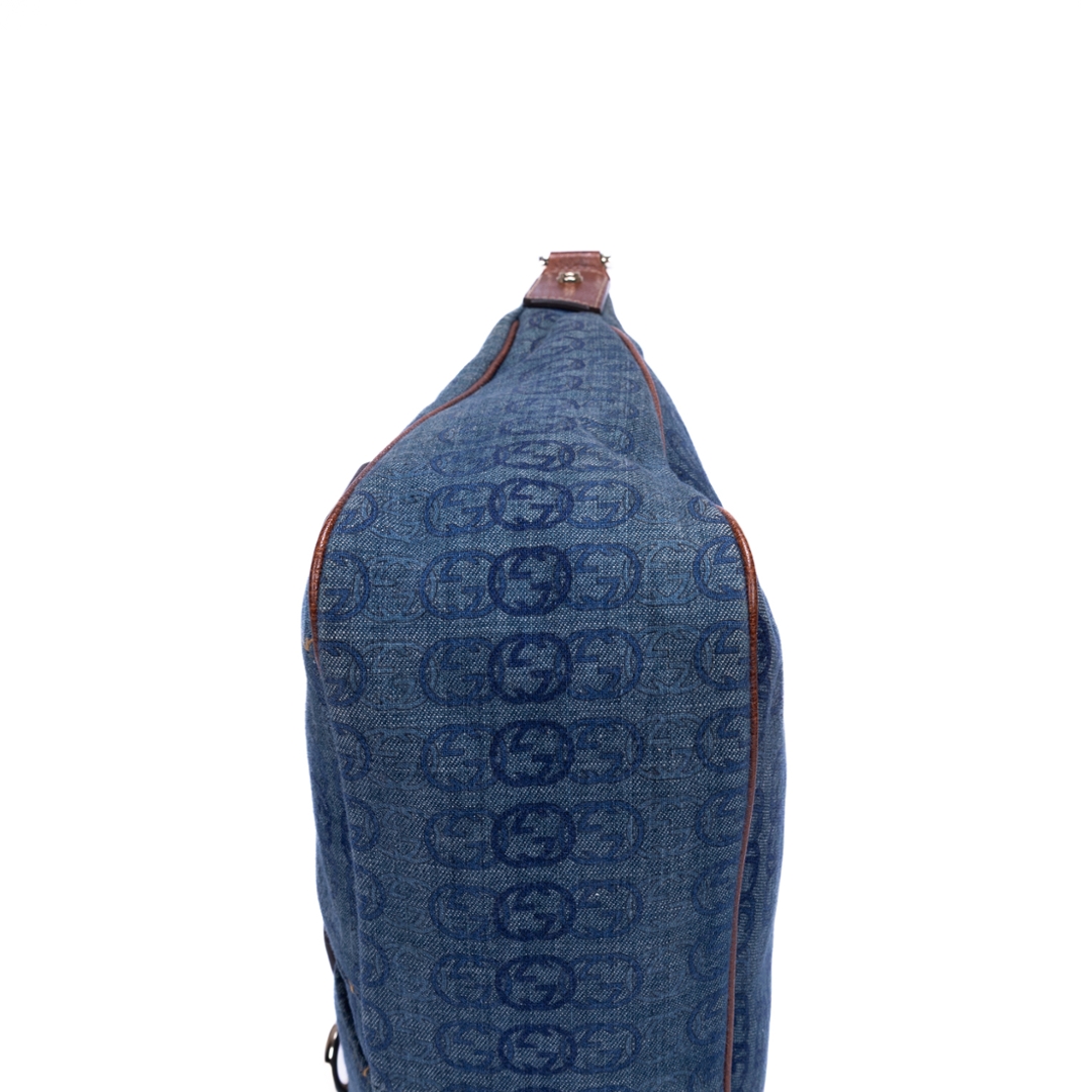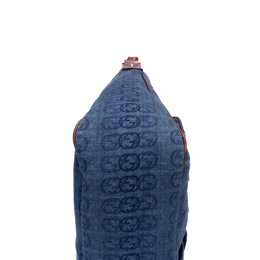 A vintage Gucci brown/blue canvas Abbey Pocket Hobo bag with a certificate of authenticity. Approximately 27cm height, 32cm width.
