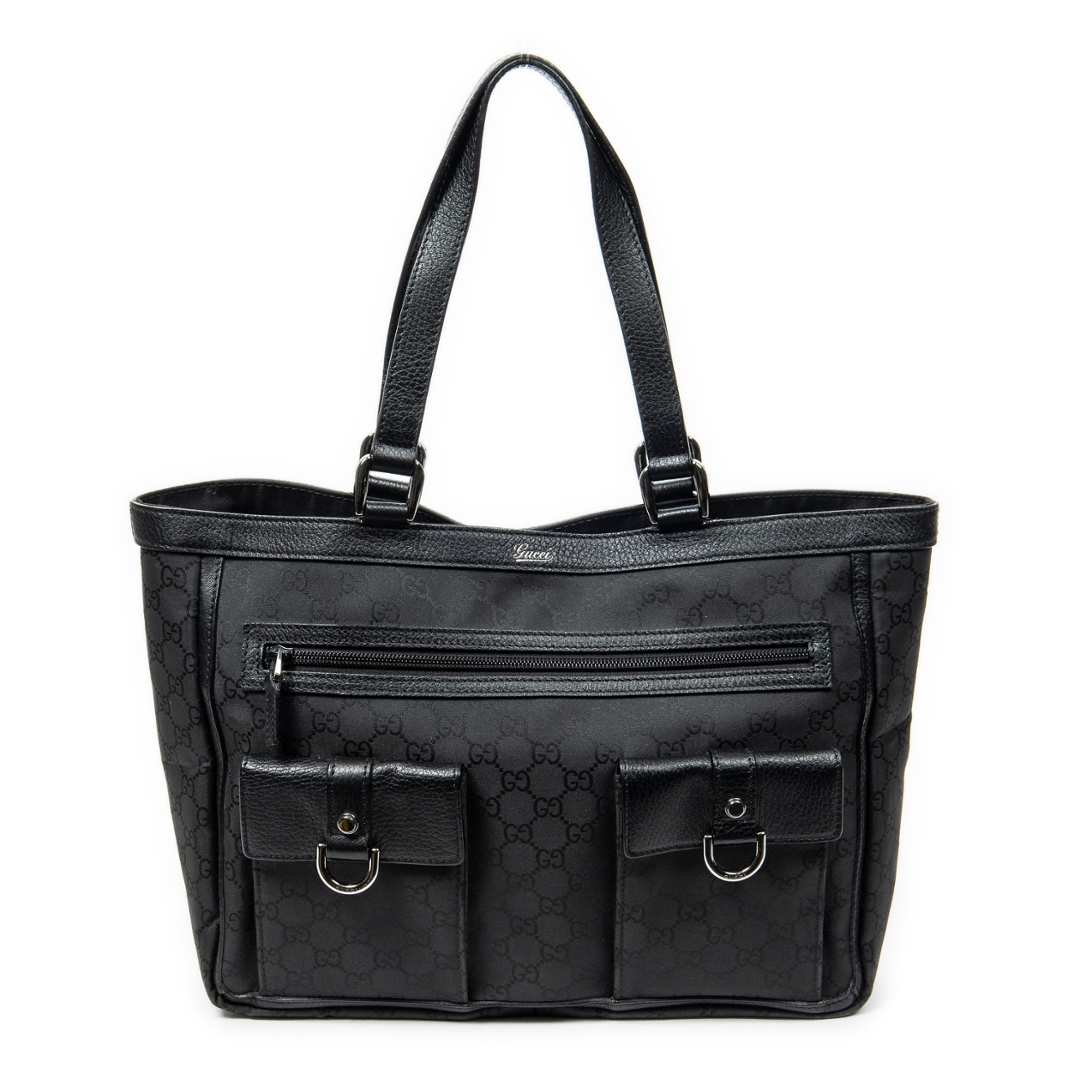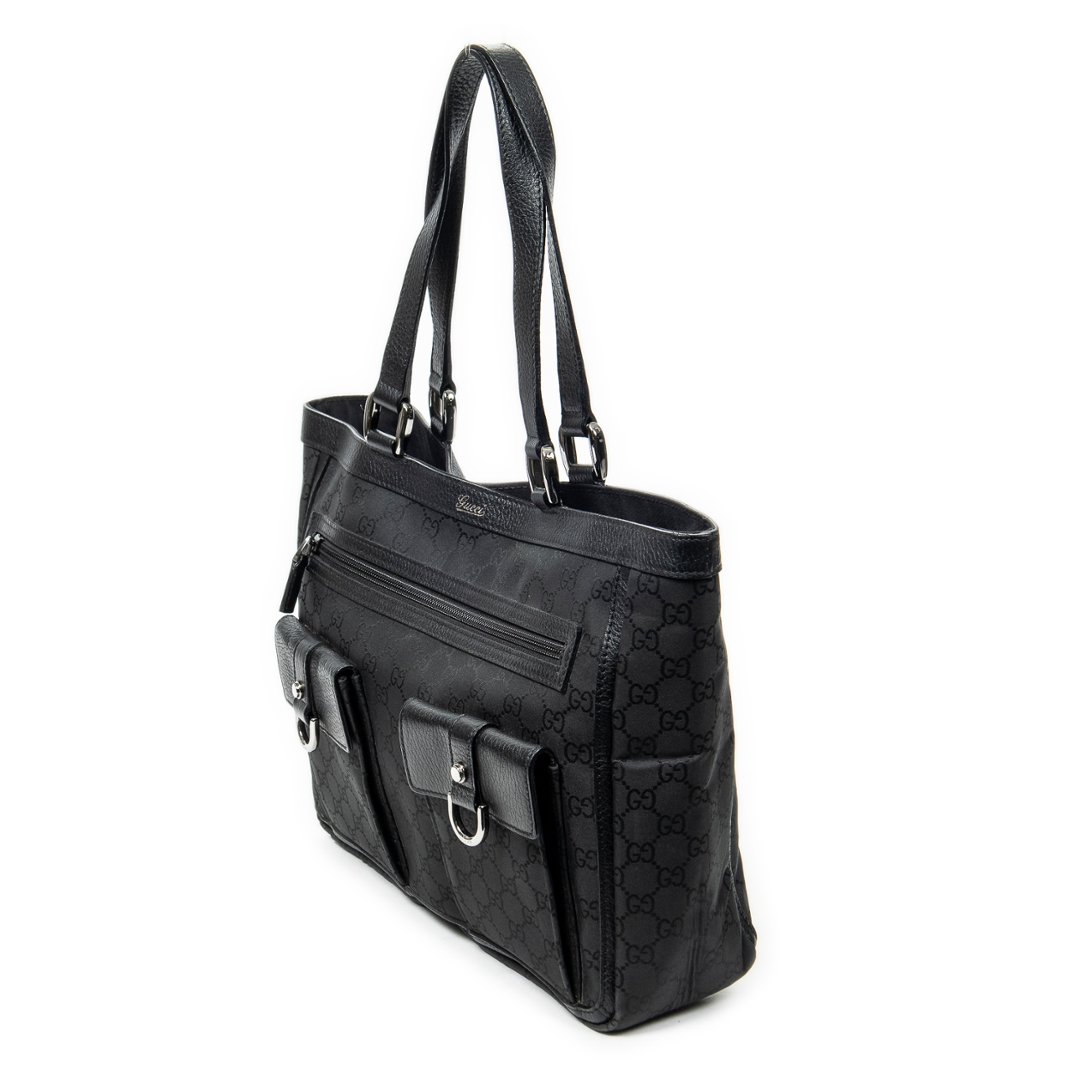 A vintage Gucci black canvas Abbey Pocket Tote bag with a certificate of authenticity. Approximately 25cm height, 33cm width.