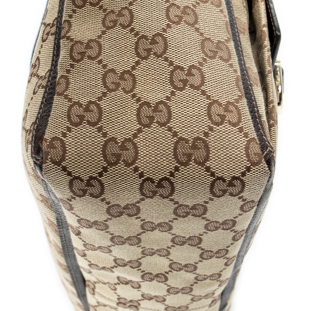 A vintage Gucci beige/dark brown canvas Abbey Tote bag with a certificate of authenticity. Approximately 25cm height, 33cm width.
