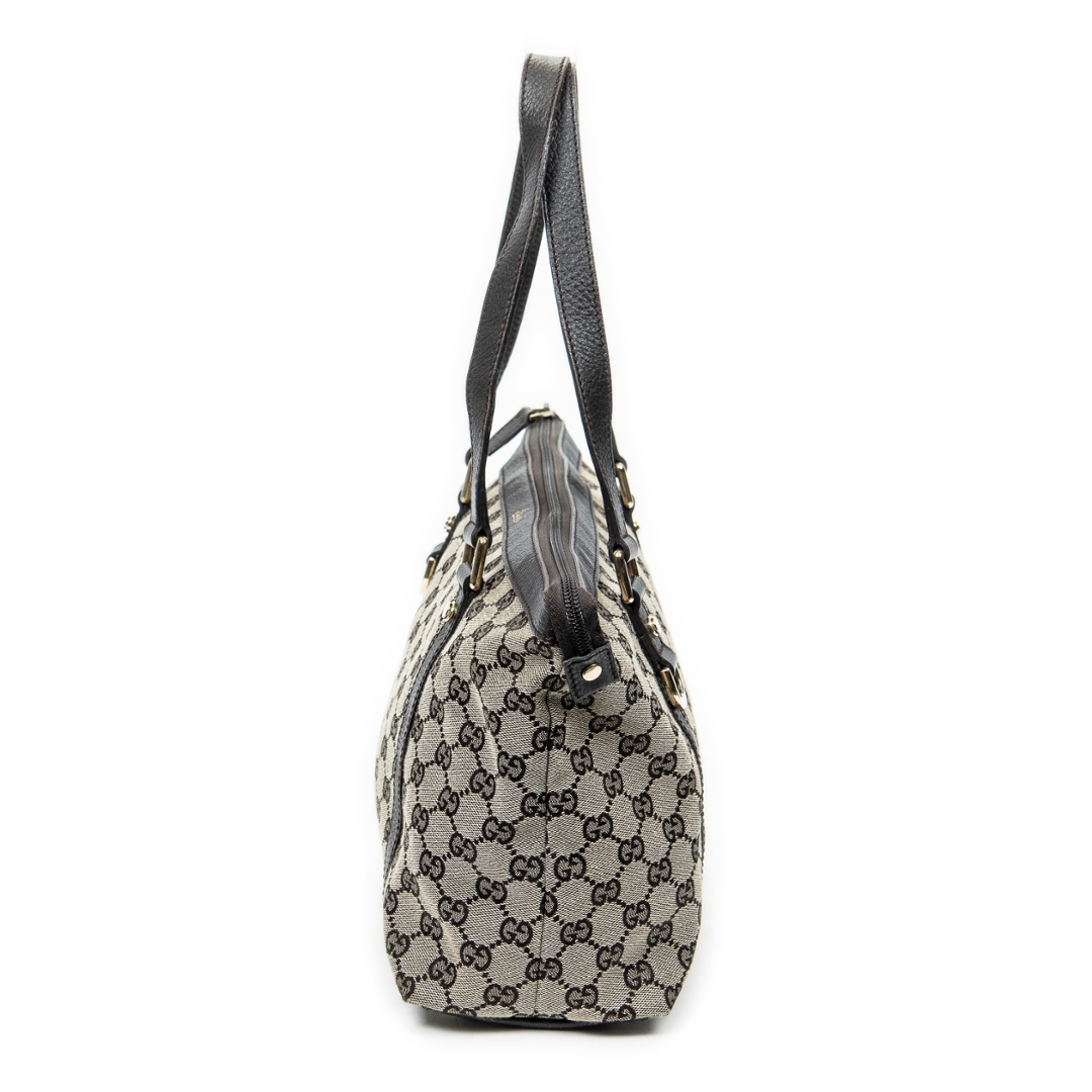 A vintage Gucci dark brown/black canvas Abbey Tote bag with a certificate of authenticity, Approximately 21cm height, 31cm width.