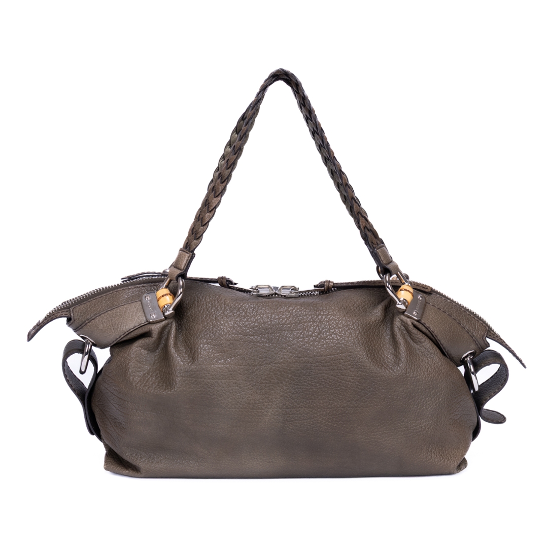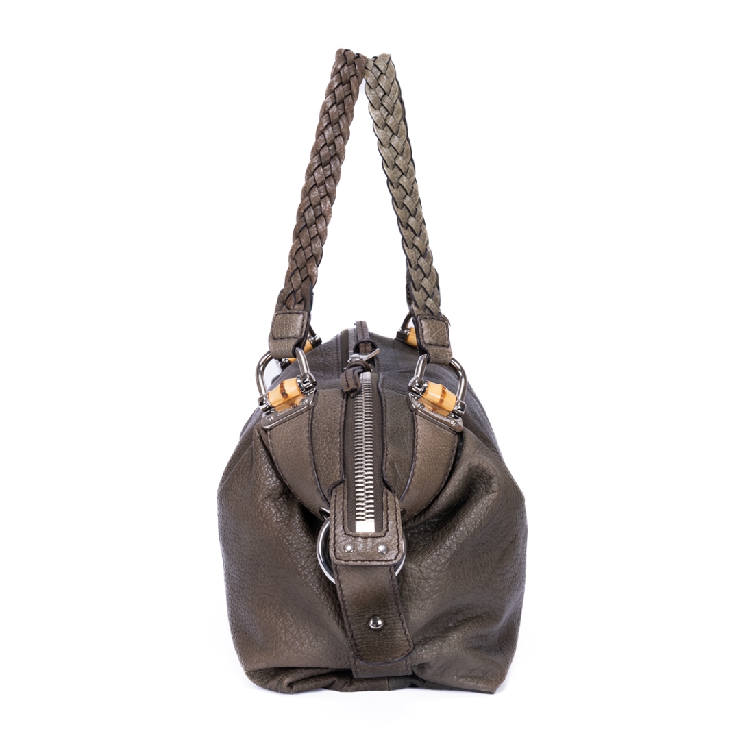 A vintage Gucci khaki green calf leather Bamboo Bar bag with a certificate of authenticity, Approximately 22cm height, 49cm width.