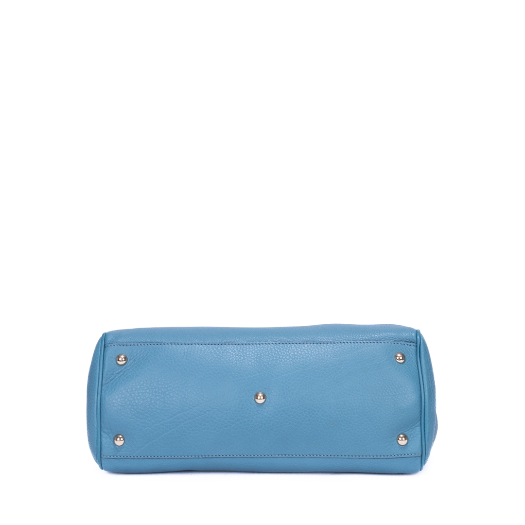 A vintage Gucci blue calf leather Bamboo Tote bag, crafted from finely grained leather in a soft, elegant tone. The structured silhouette is elevated by the house’s iconic curved bamboo handles, a signature detail that reflects Gucci’s heritage craftsmanship. Finished with subtle gold-tone branding to the front, the design remains clean, refined, and effortlessly timeless.