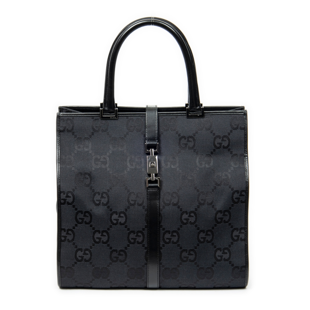 A vintage Gucci black canvas Bardot Tall Tote bag with a certificate of authenticity, Approximately 32cm height, 33cm width.