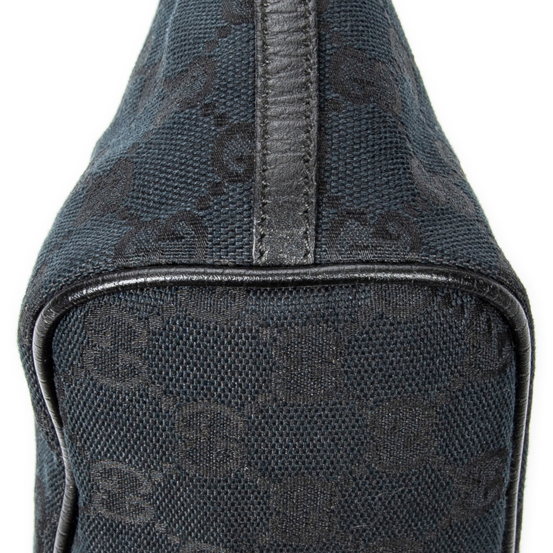 A vintage Gucci black canvas Boat Pochette bag with a certificate of authenticity, Approximately 10cm height, 22cm width.