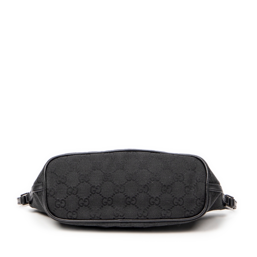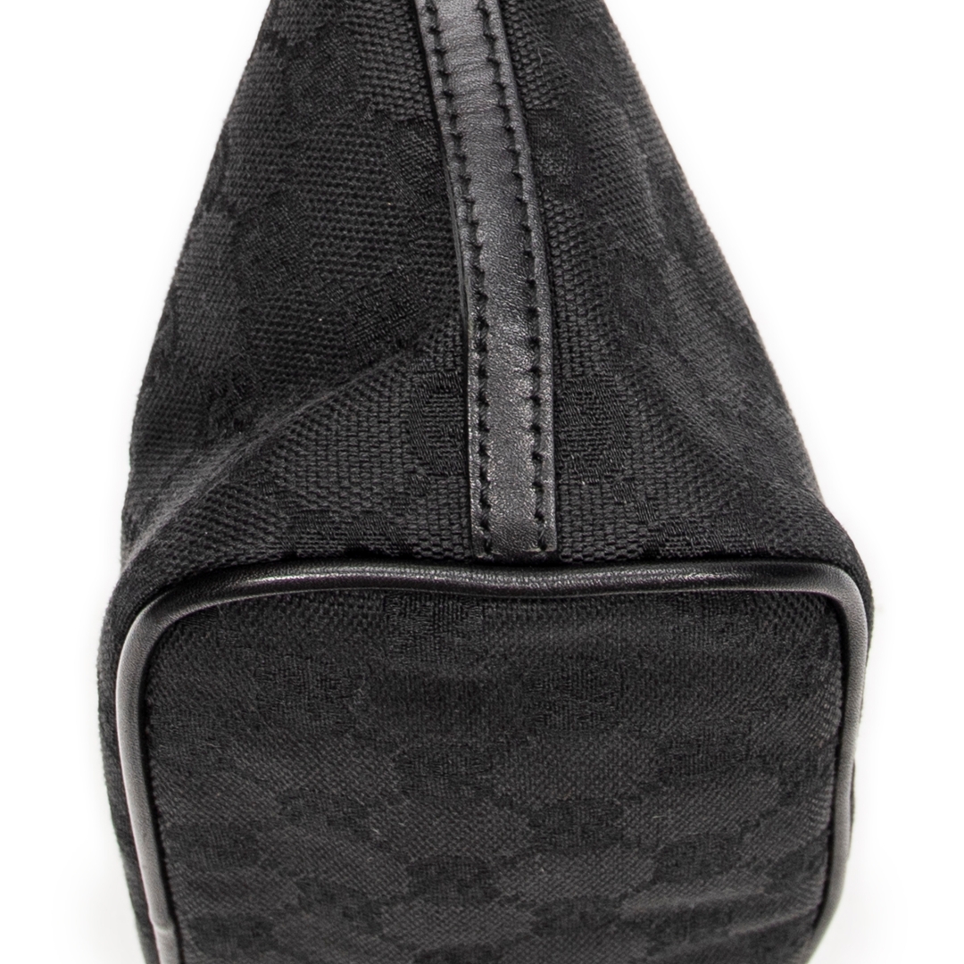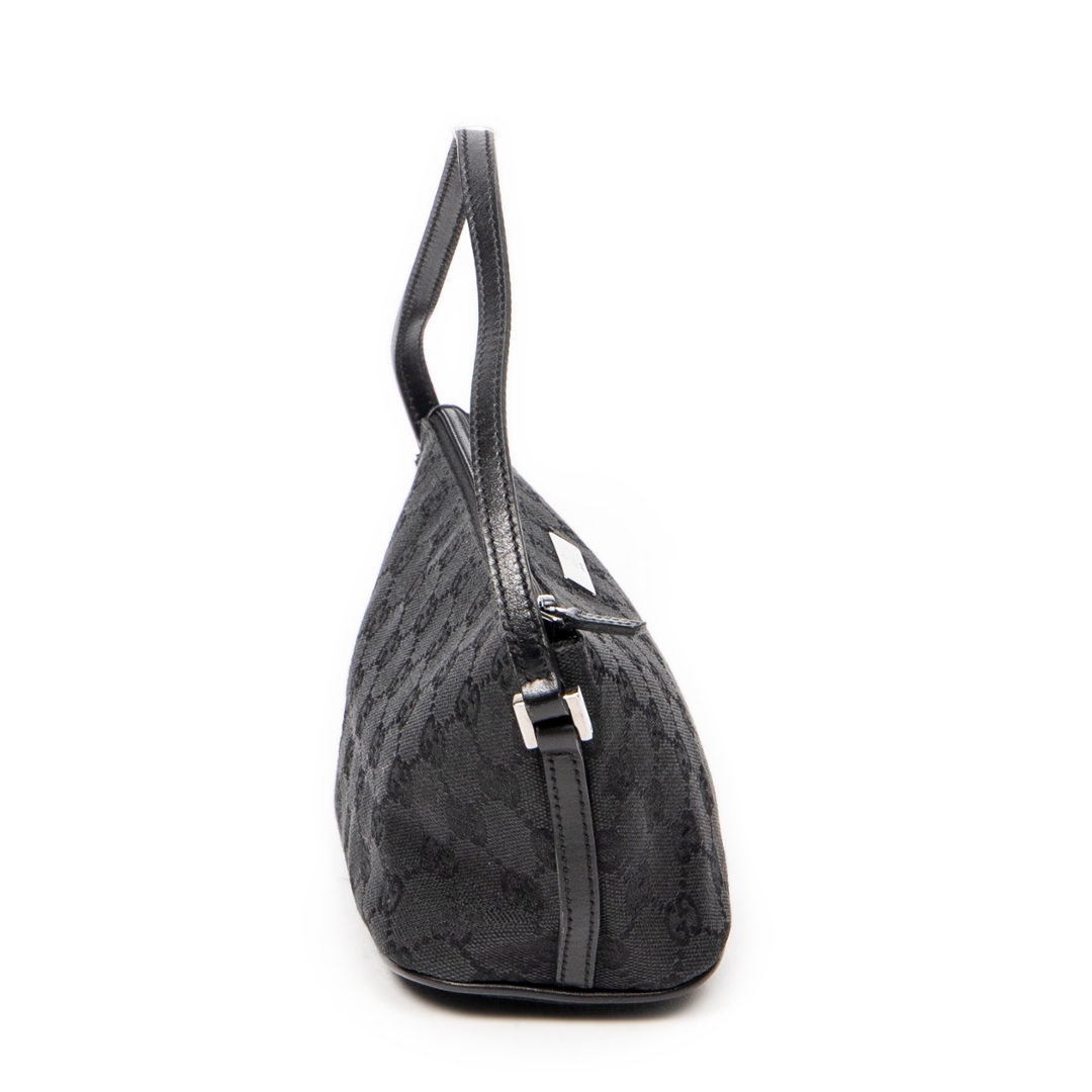 A vintage Gucci black canvas Boat Pochette bag with a certificate of authenticity, Approximately 10cm height, 22cm width.