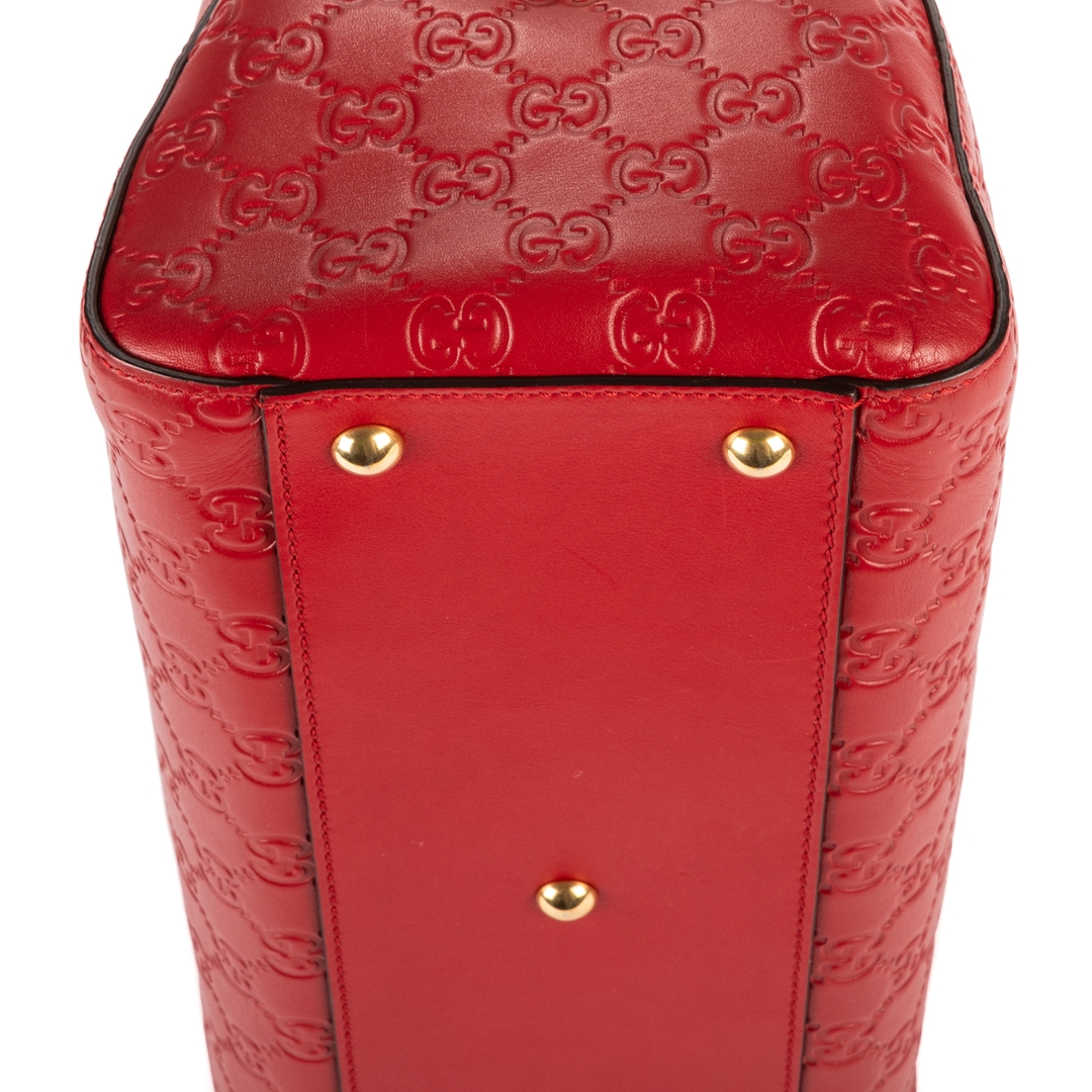 A vintage Gucci red calf leather Boston Bandouliere bag with a certificate of authenticity, Approximately 19cm height, 29cm width.