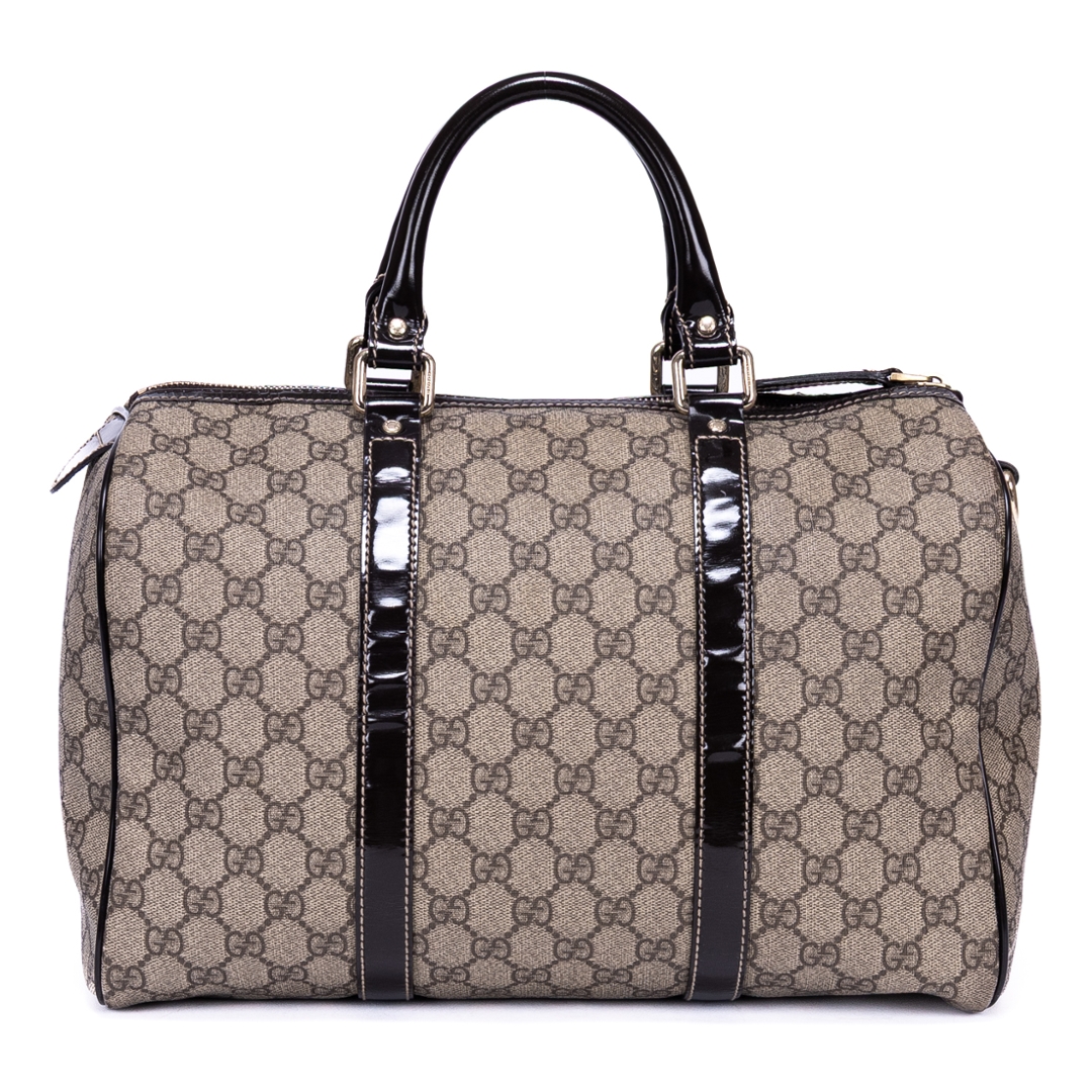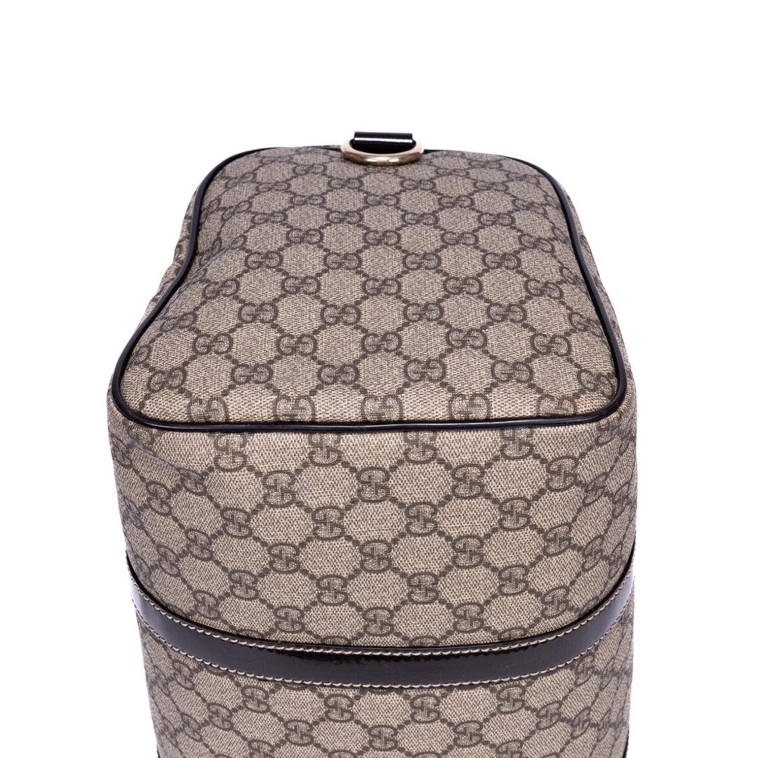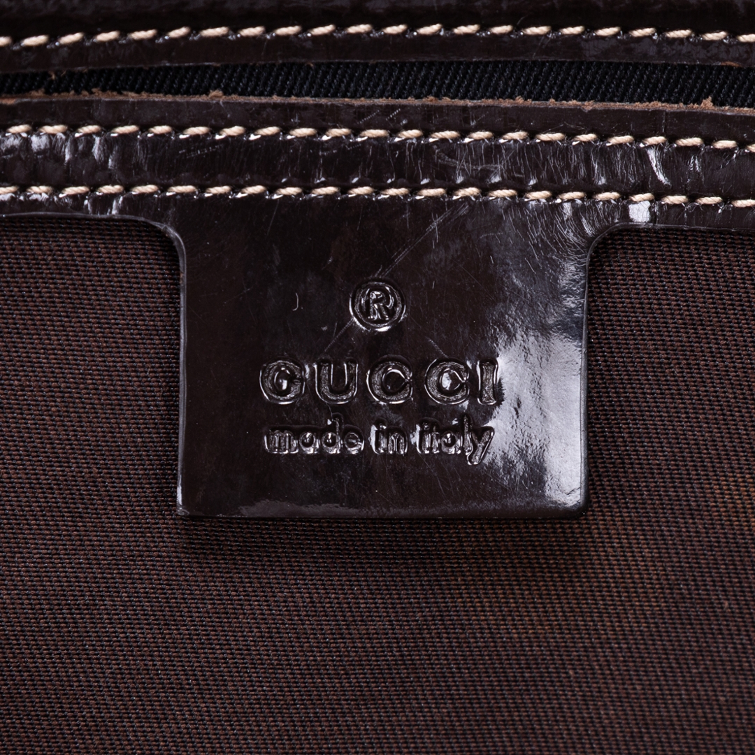 A vintage Gucci beige/dark brown coated canvas Boston bag with a certificate of authenticity. Approximately 21cm height, 32cm width.