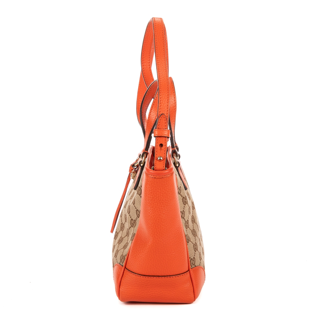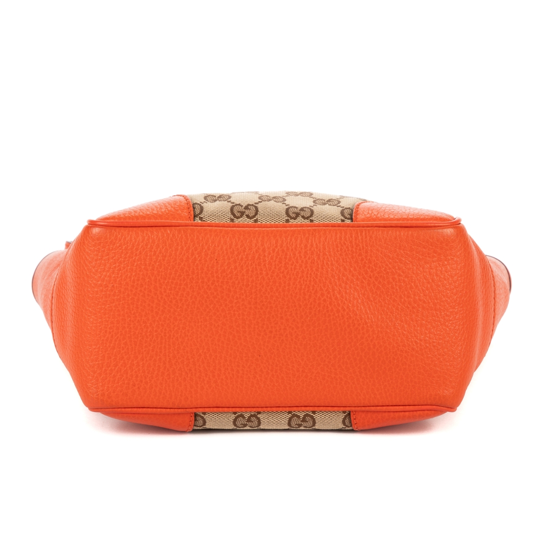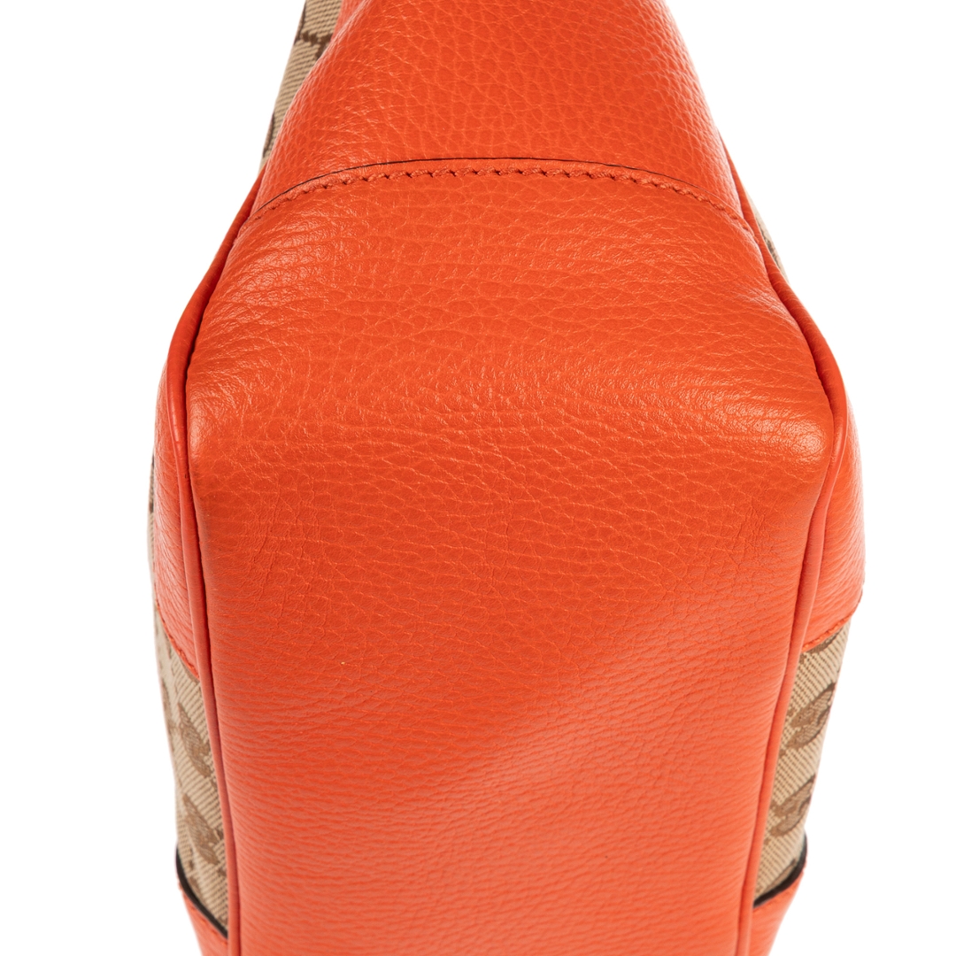 A vintage Gucci beoge/orange calf leather Bree GG Tote bag with a certificate of authenticity, Approximately 20cm height, 20cm width.