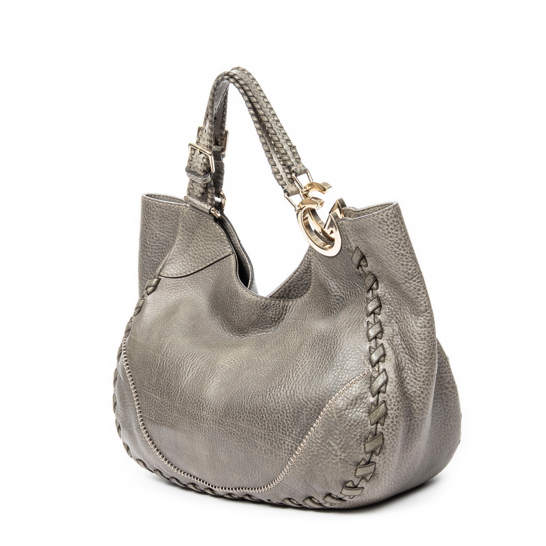 A vintage Gucci grey calf leather Charlotte Hobo bag with a certificate of authenticity, Approximately 35cm height, 40cm width.