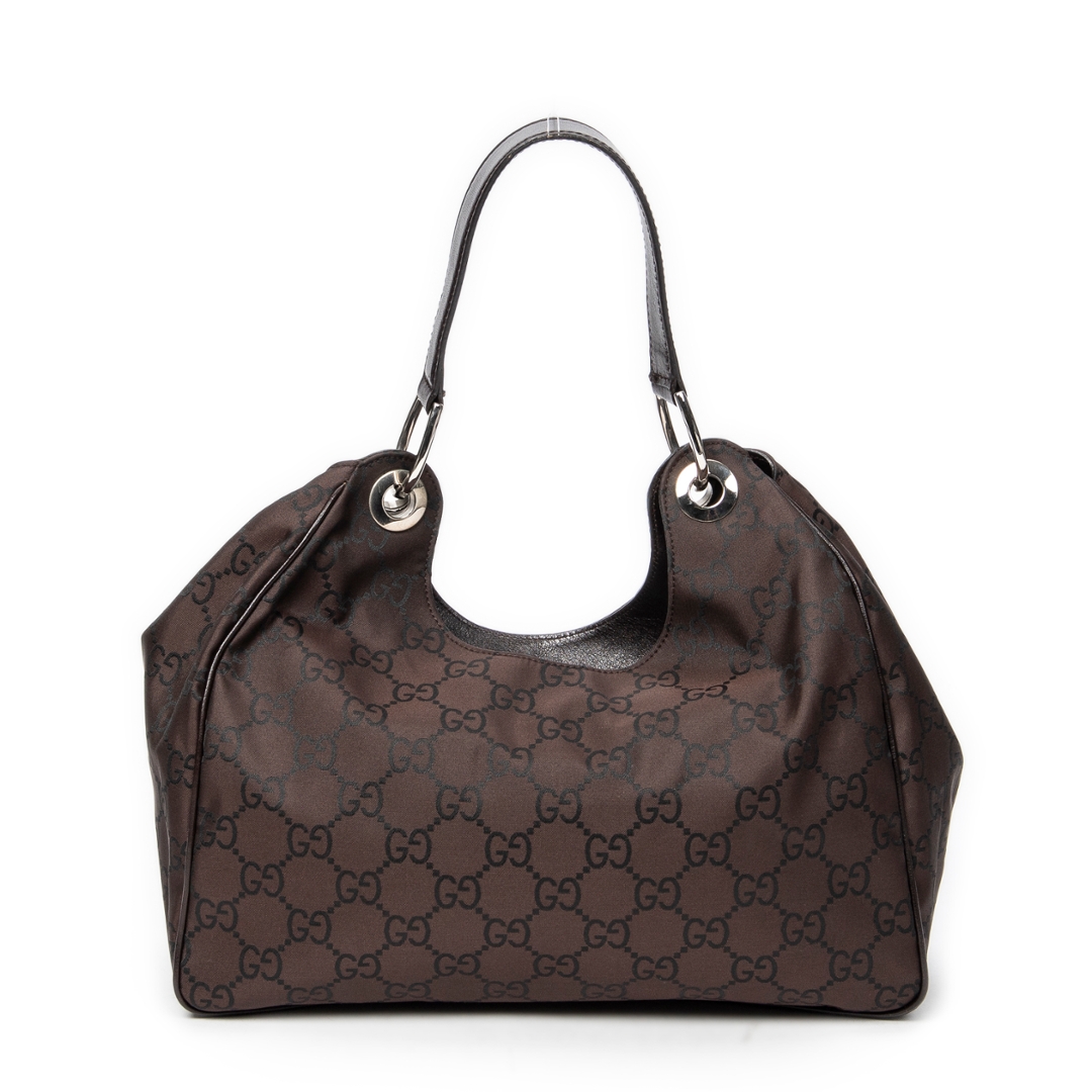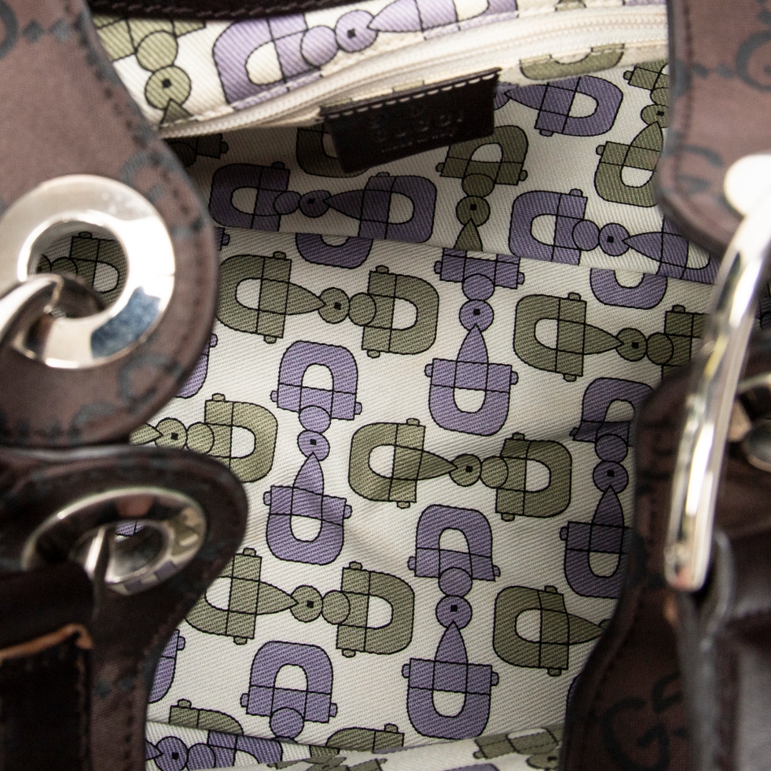 A vintage Gucci brown canvas Colbert Hobo bag with a certificate of authenticity. Approximately 20cm height, 34cm width.
