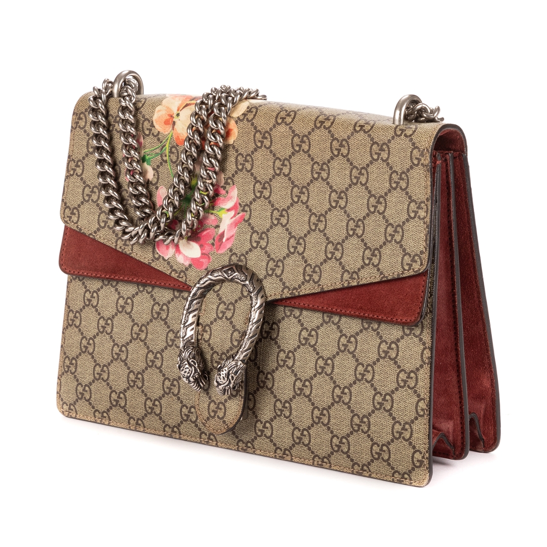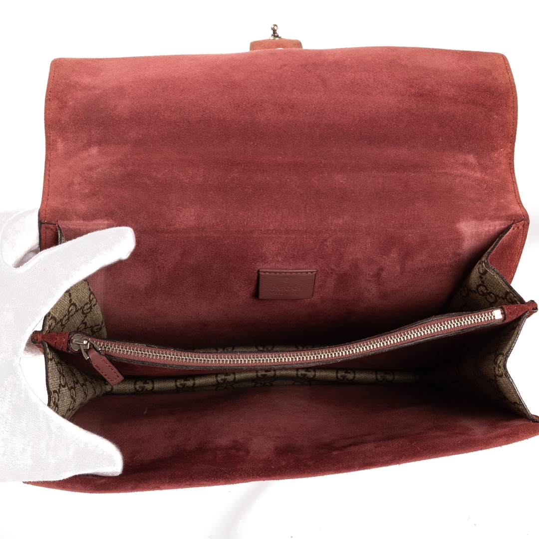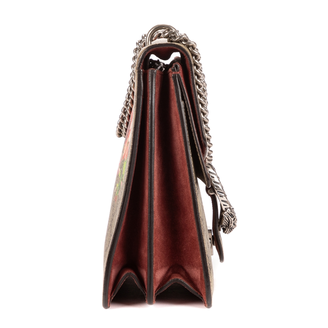 A vintage Gucci beige/red coated canvas Dionysus bag with a certificate of authenticity, Approximately 21cm height, 29cm width.