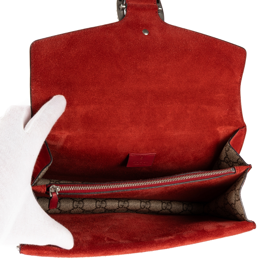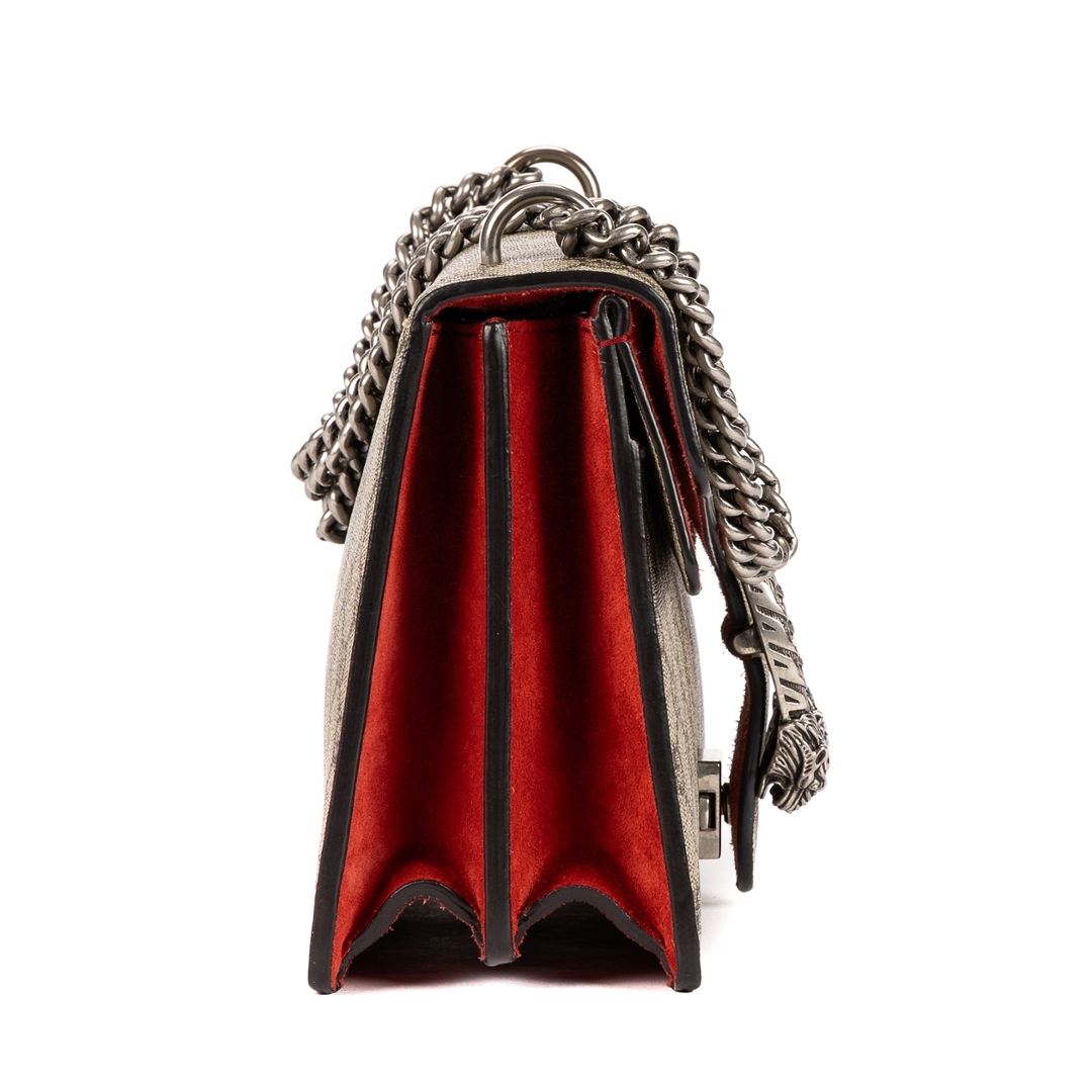 A vintage Gucci beige/red coated canvas Dionysus bag with a certificate of authenticity, Approximately 16cm height, 27cm width.