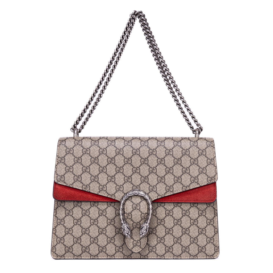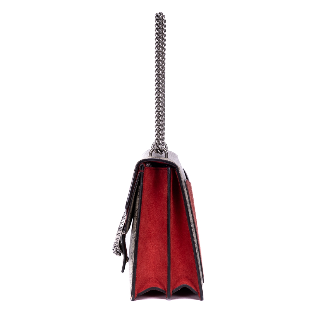 A vintage Gucci beige/red coated canvas Dionysus bag with a certificate of authenticity, Approximately 22cm height, 30cm width.