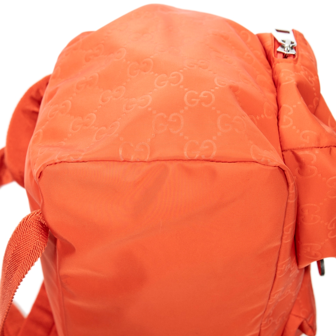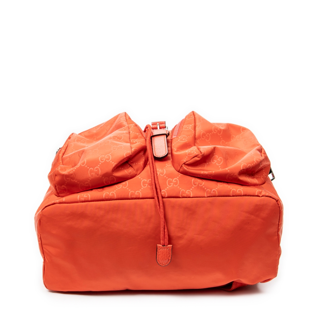A vintage Gucci orange canvas Double Front Pocket Backpack with a certificate of authenticity, Approximately 28cm height, 31cm width.