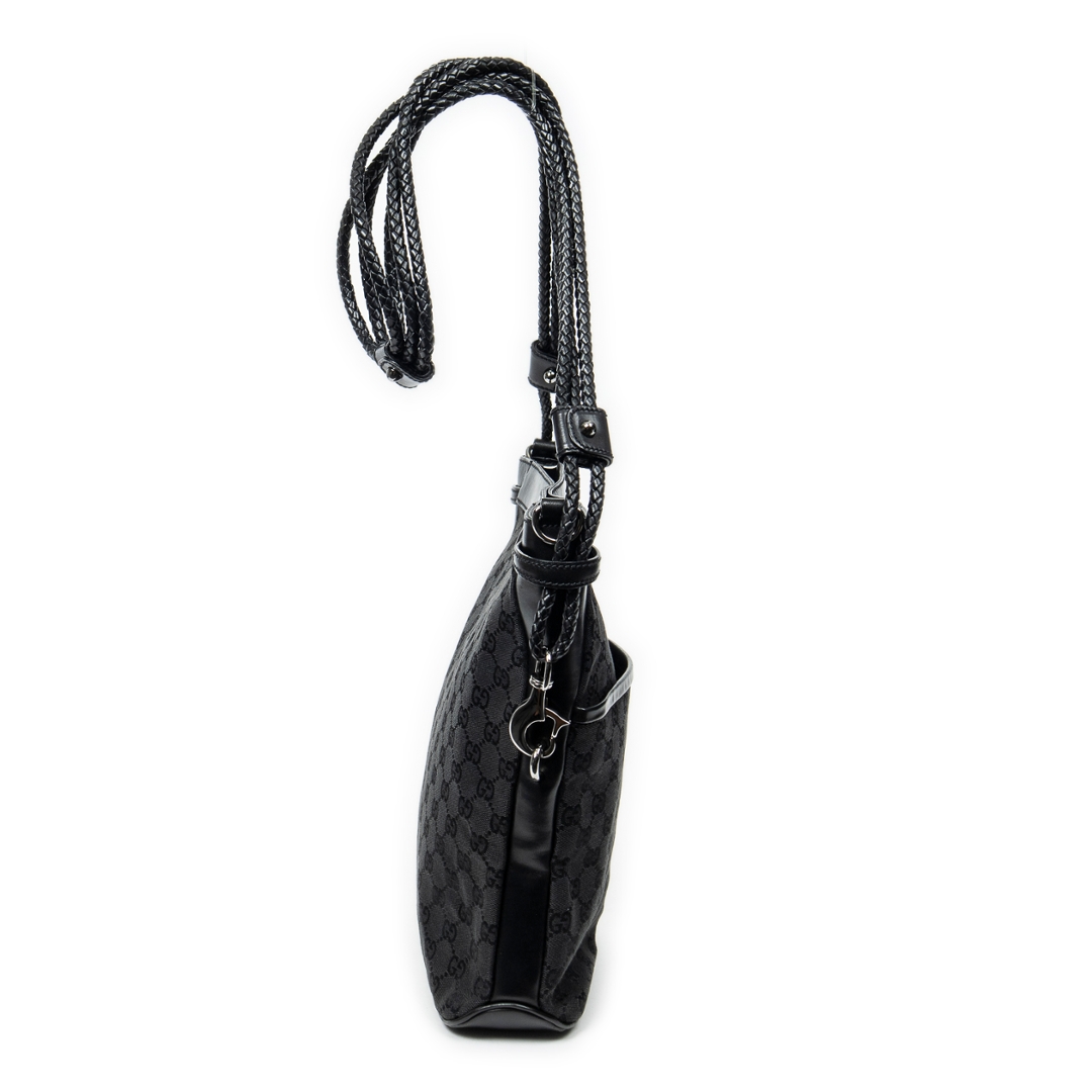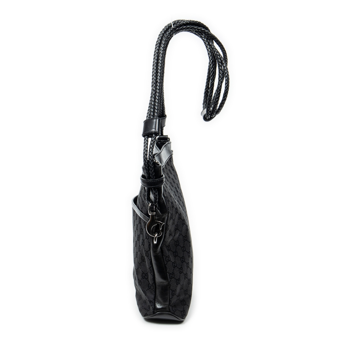 A vintage Gucci black canvas Front Pocket Braided Tote bag with a certificate of authenticity. Approximately 30cm height, 29cm width.
