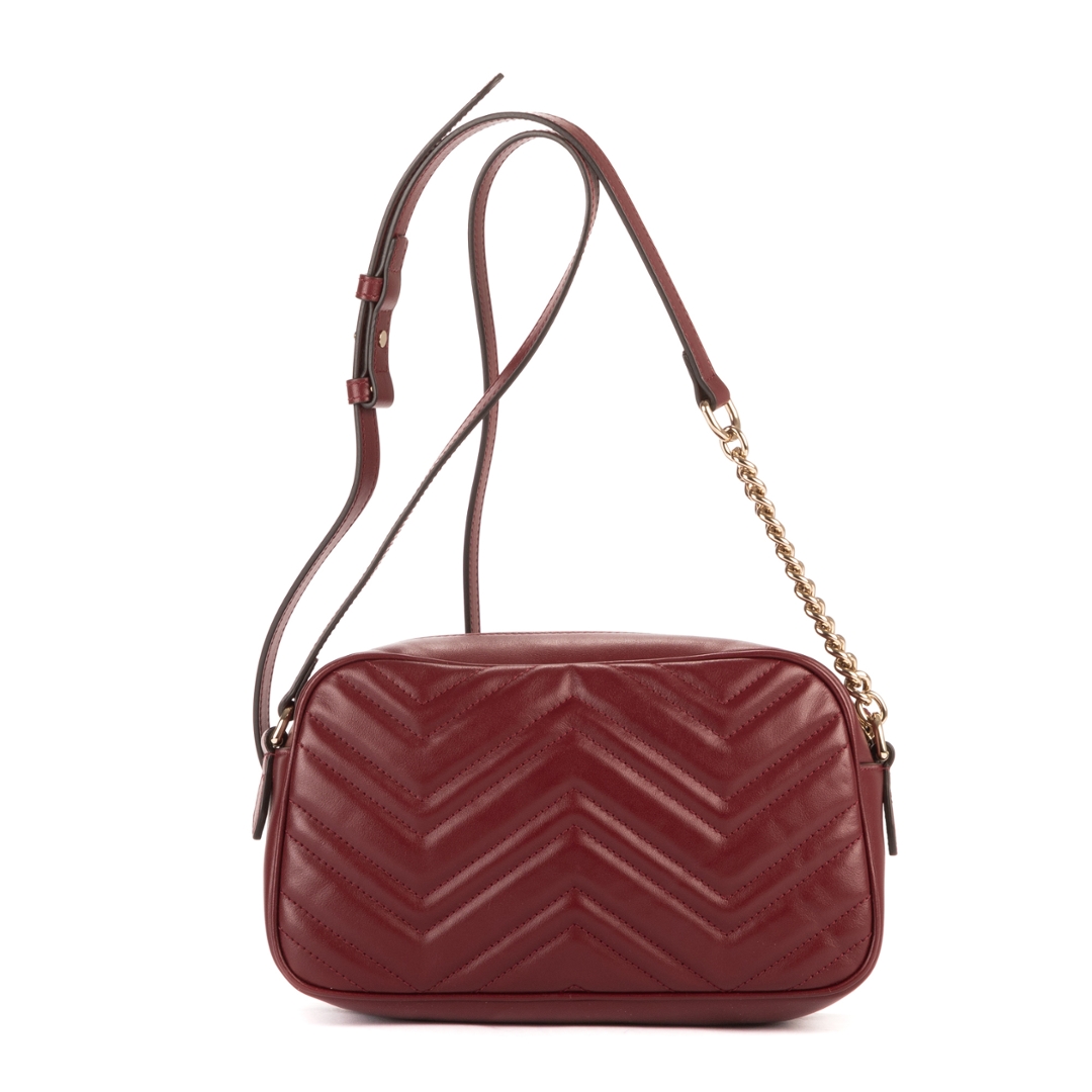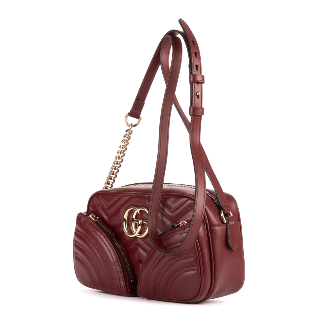A vintage Gucci burgundy calf leather Front Pockets Marmont bag with a certificate of authenticity, Approximately 15cm height, 24cm width.