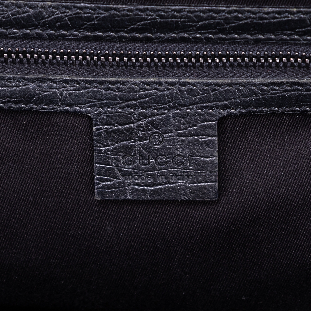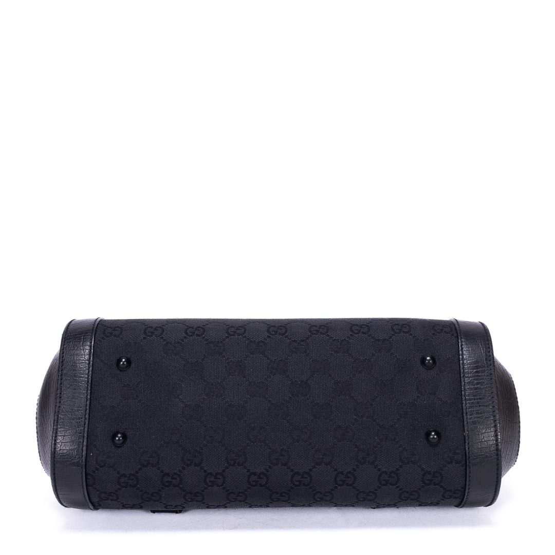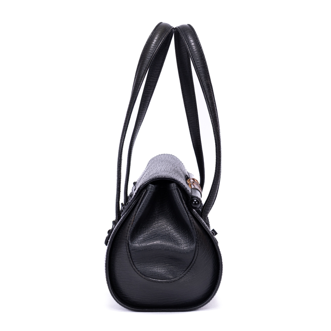 A vintage Gucci black calf leather GG Bamboo Bullet bag with a certificate of authenticity, Approximately 18cm height, 32cm width.
